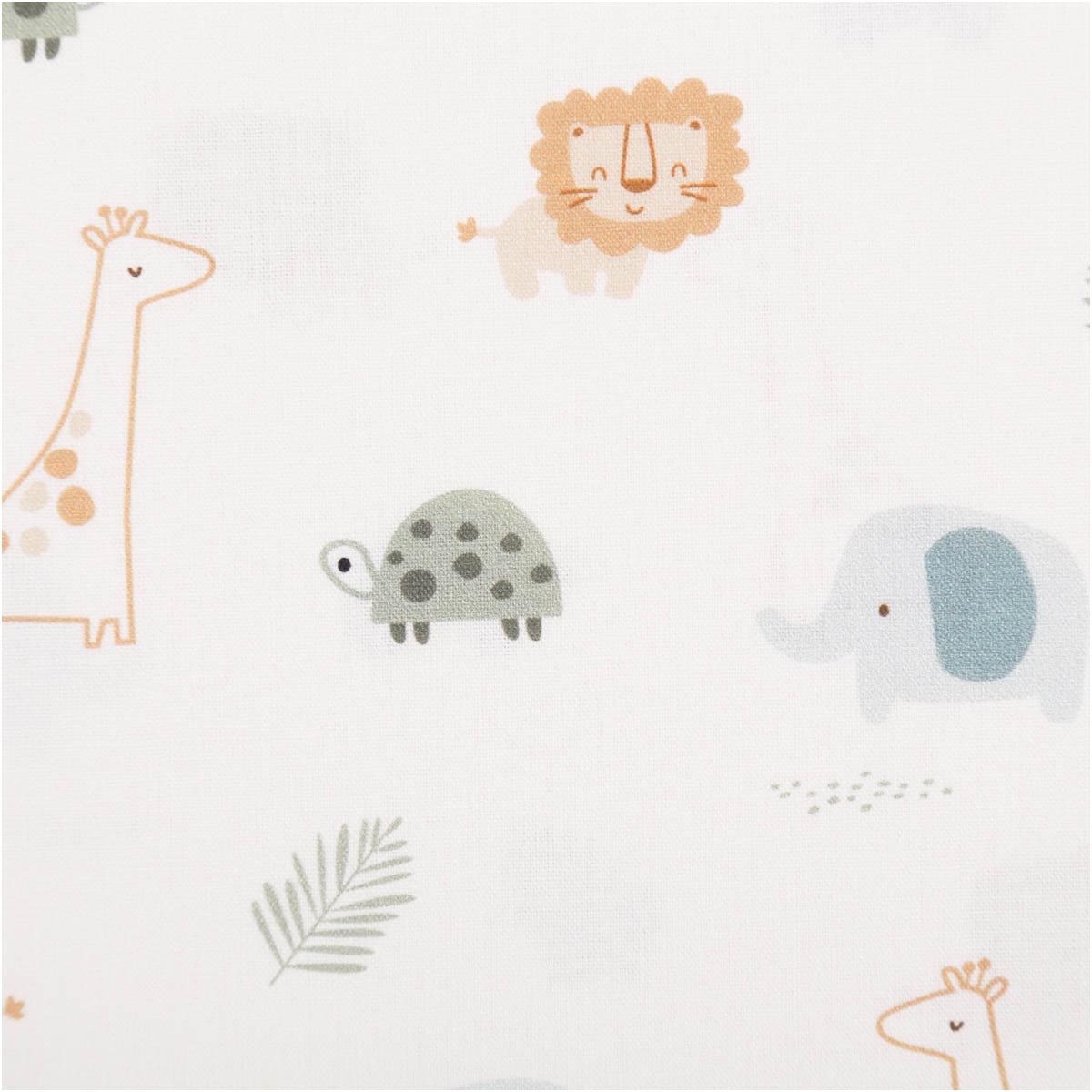Niedliches Zootiere-Muster: Kinderfreundlicher Baumwollstoff mit süßen Tieren – perfekt für Baby- und Kinderausstattung.