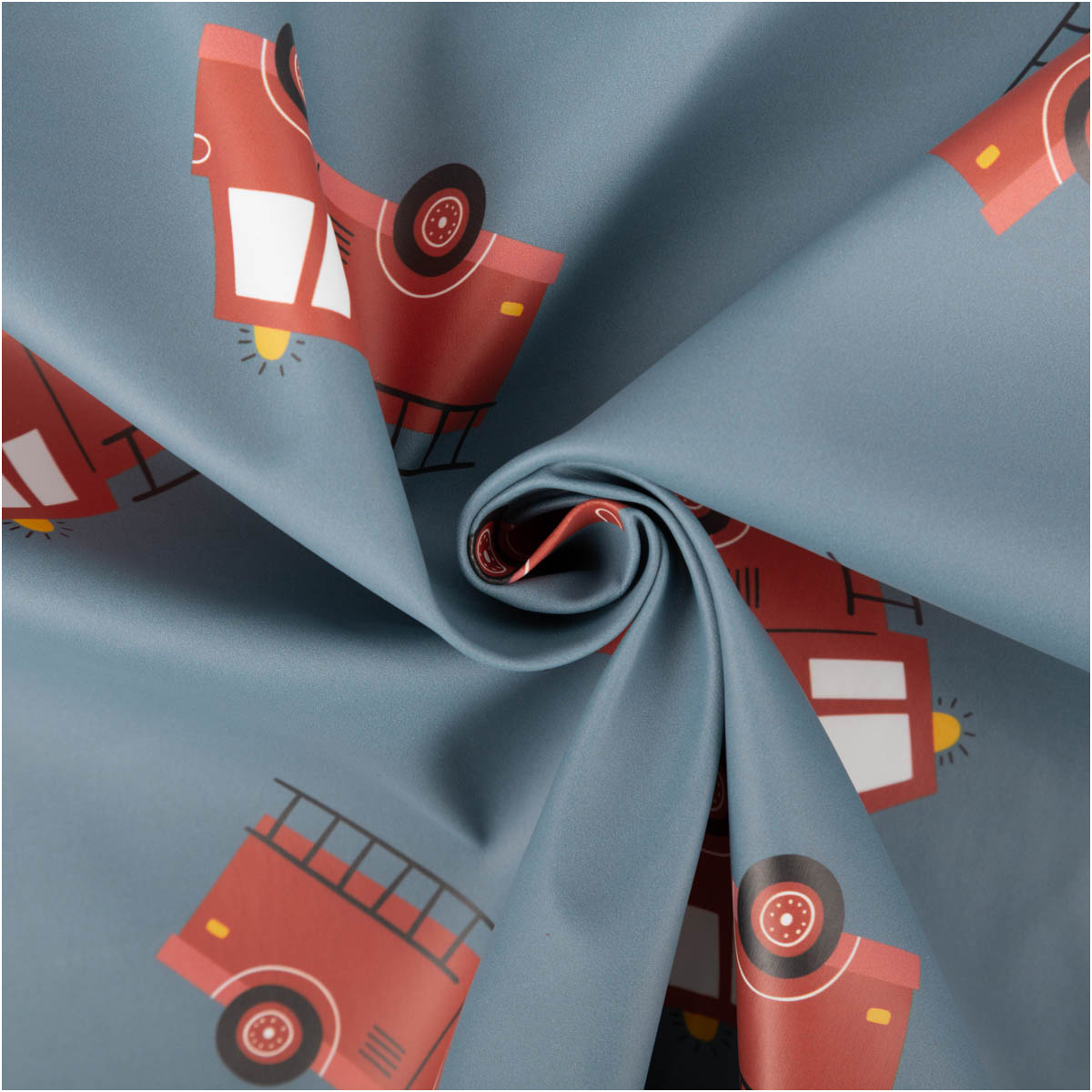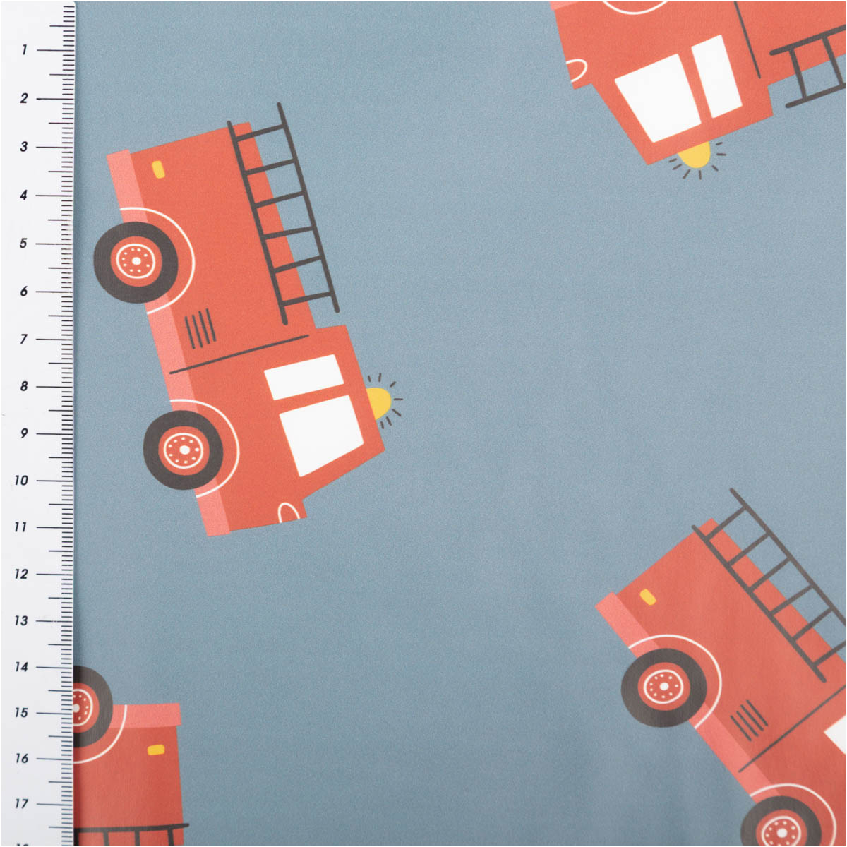 Regenjackenstoff Aqua-Protect Wasserdicht – Soft, Feuerwehrautos Blau, 145 cm Breite