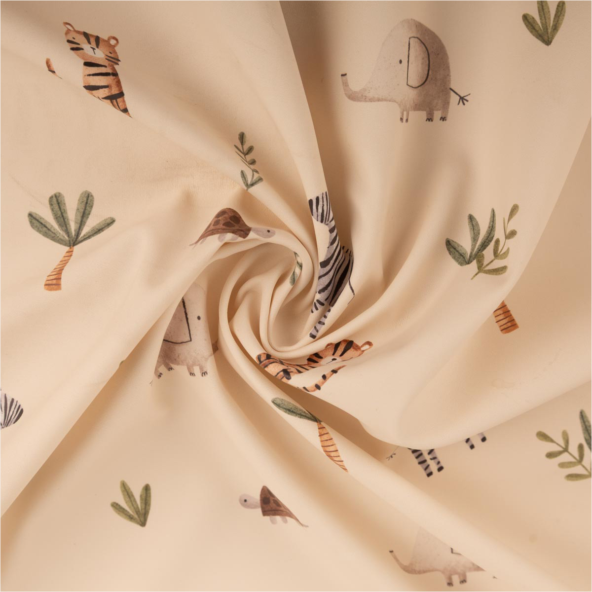 Regenjackenstoff Aqua Protect Safari Tiere beige – wasserdicht, soft & kindgerecht