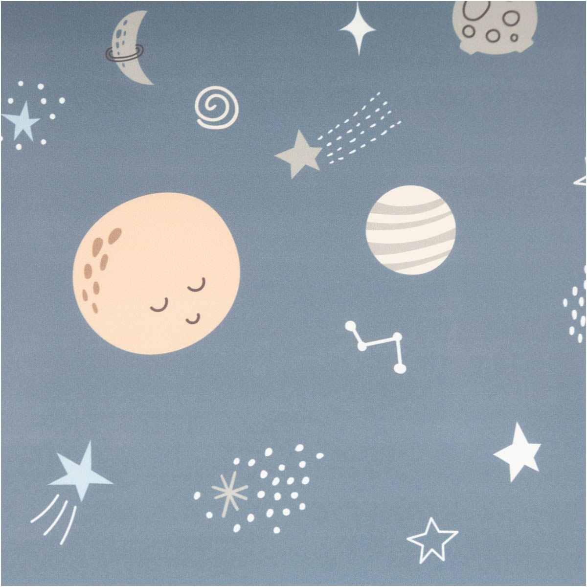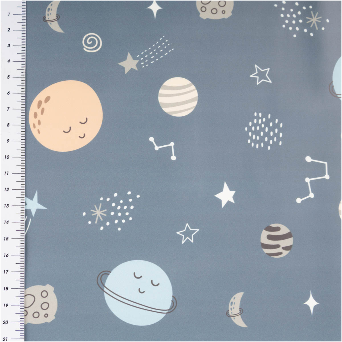 Space-Look trifft Wetterschutz: Der Aqua-Protect-Regenjackenstoff in Blau mit Planeten und Sternen ist wasserdicht, weich und 145 cm breit – perfekt für wetterfeste Lieblingsstücke.