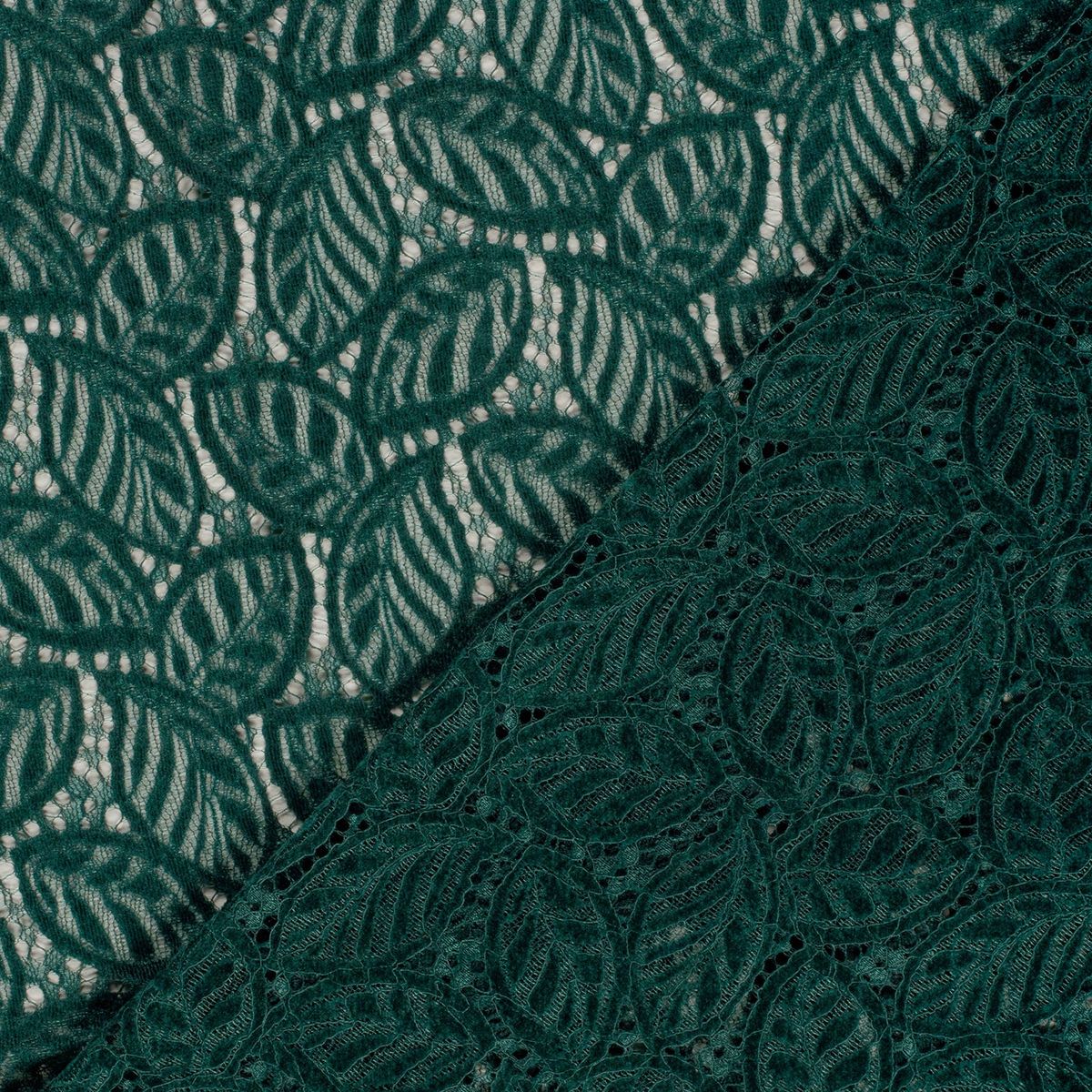Spitze mit Chenille im Blätterdessin – Meterware dunkelgrün, 150 cm breit