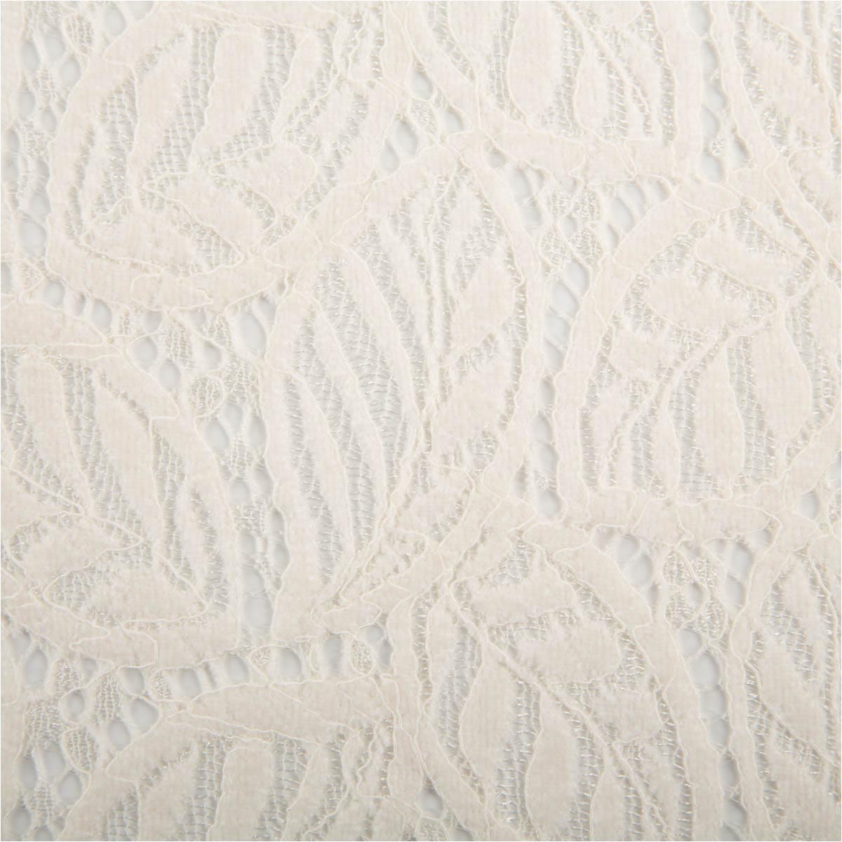 Spitze mit Chenille-Blätterdessin – Meterware in Wollweiß (150 cm Breite)