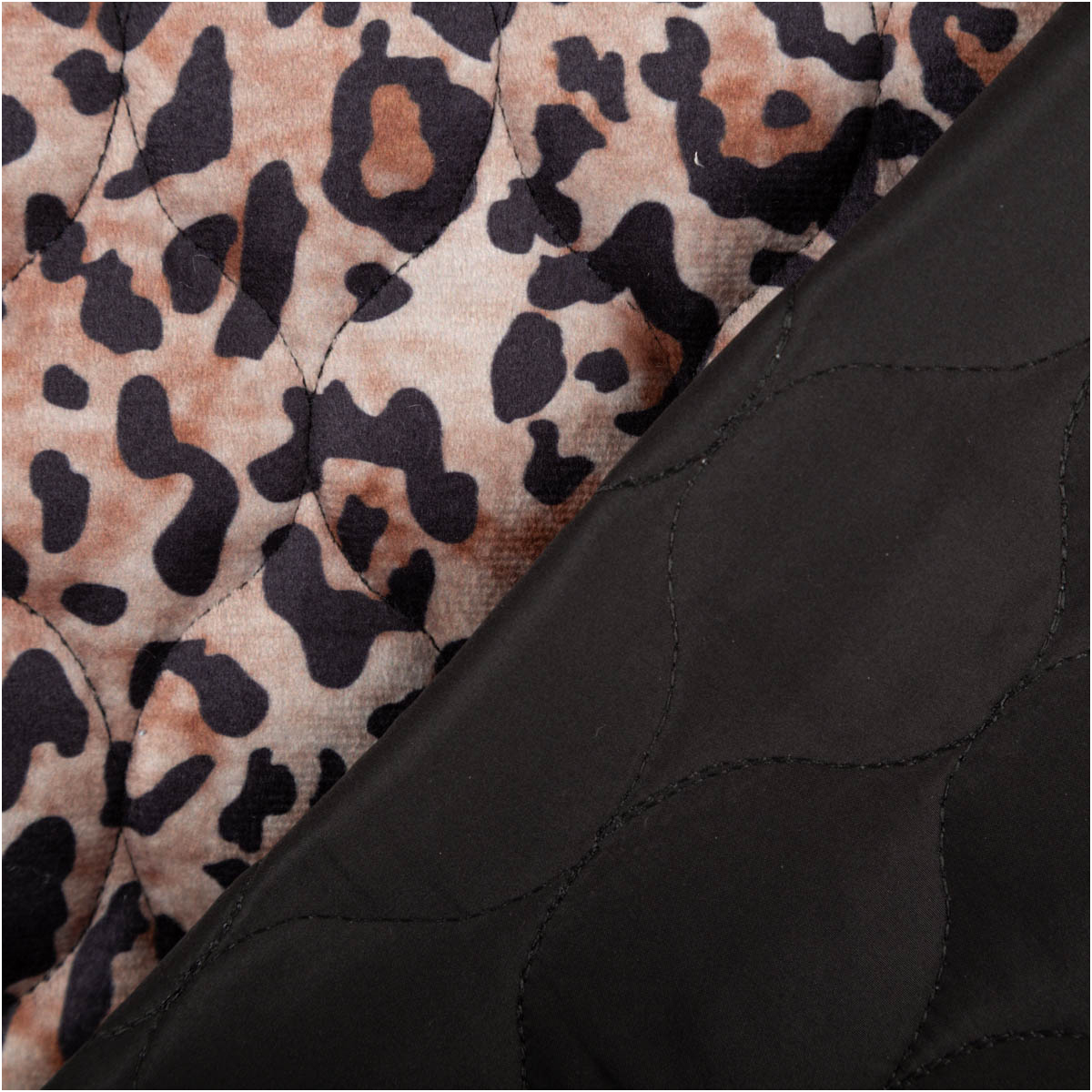Aufbau: 3-lagig – Futterseite uni Schwarz, wattierte Vlies-Schicht, Oberseite Leo Velvet