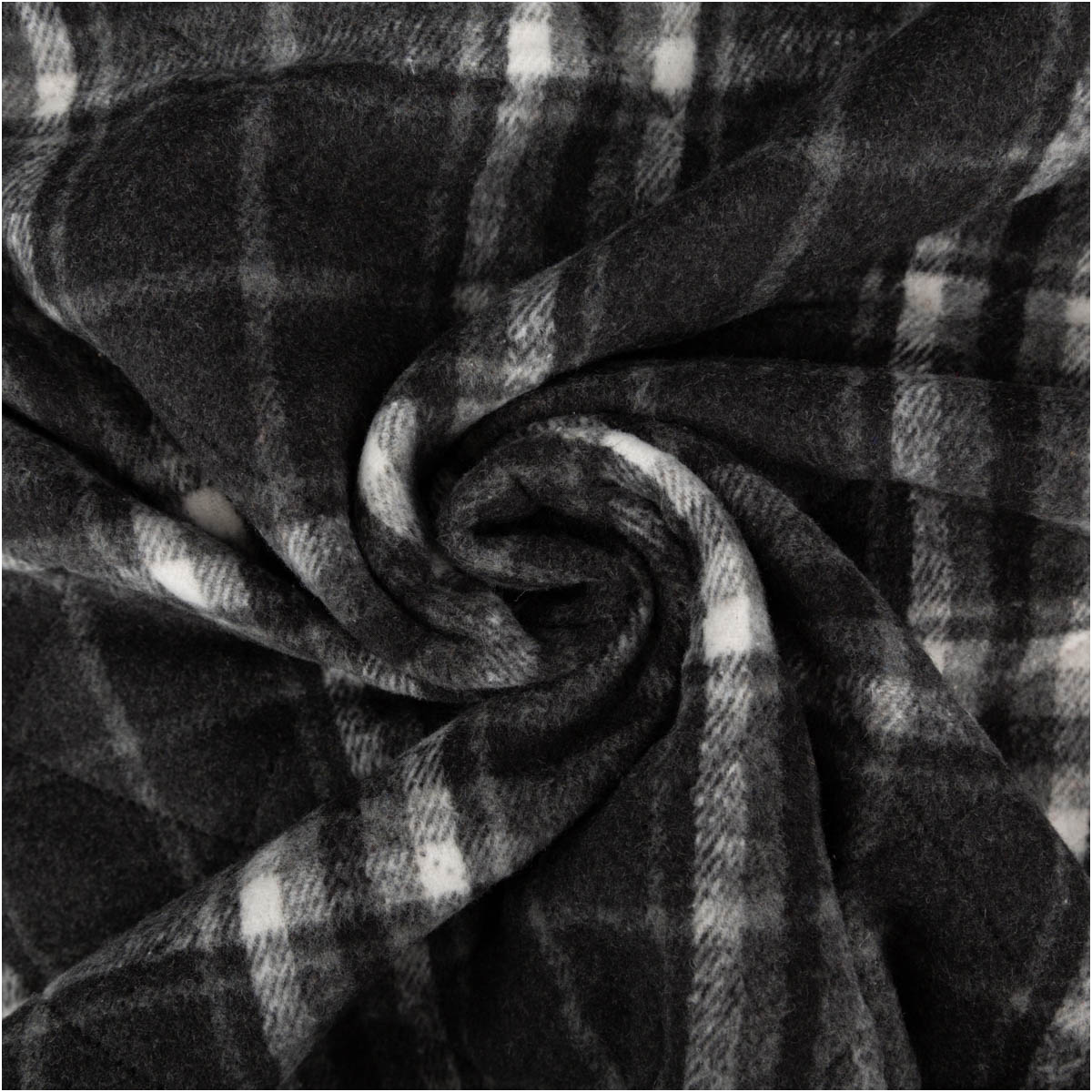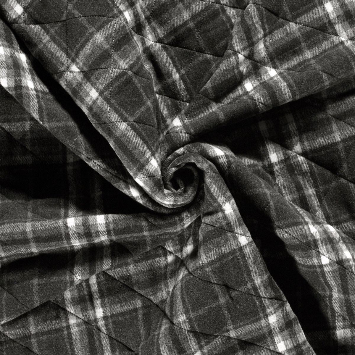 Steppstoff Jacquard Fleece Karos dunkelgrau schwarz145 cm breit