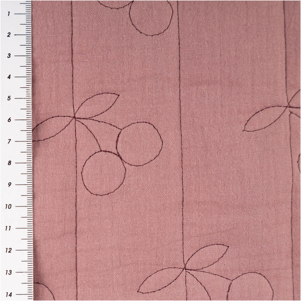 Steppstoff Musselin Kirschen Stickerei mauve Meterware – wattierter Stoff für Jacken, Westen und Taschen