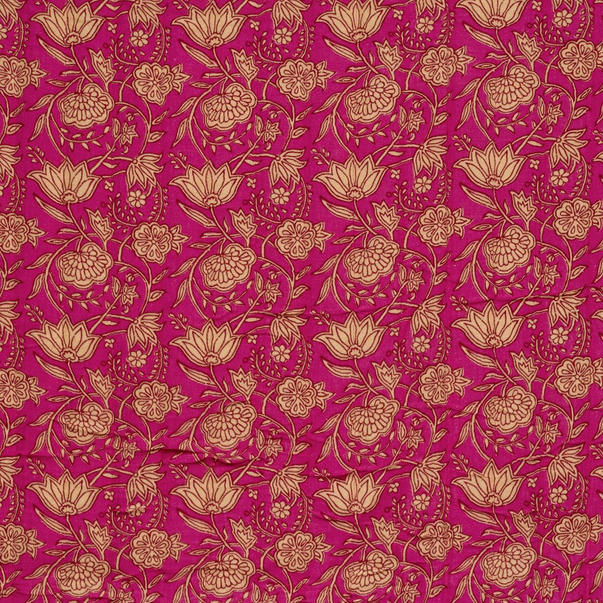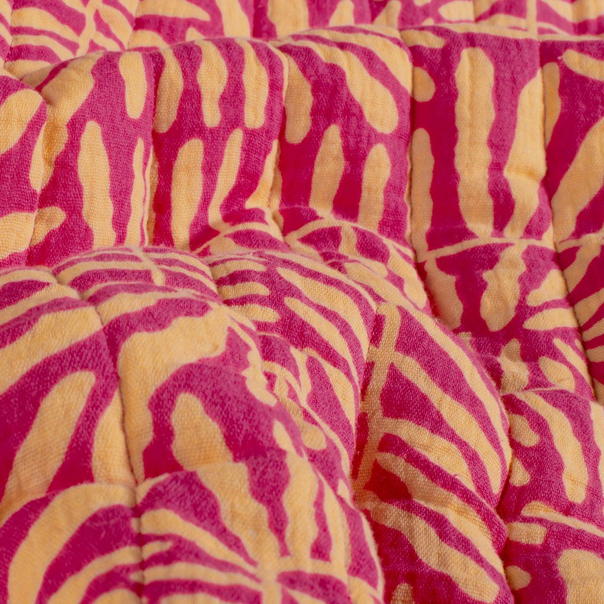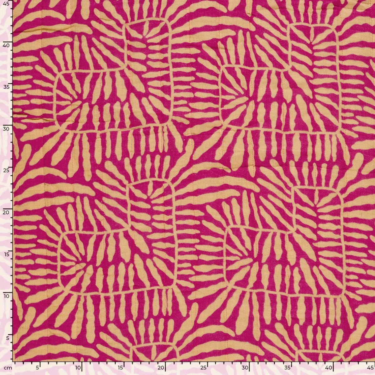 Dieser Steppstoff aus Musselin verbindet eine moderne Optik mit angenehmem Komfort. Die Kombination aus kräftigem Fuchsia und warmem Beige sorgt für einen lebendigen Look, während das abstrakt-florale Muster dem Stoff eine besondere Ausstrahlung verleiht.