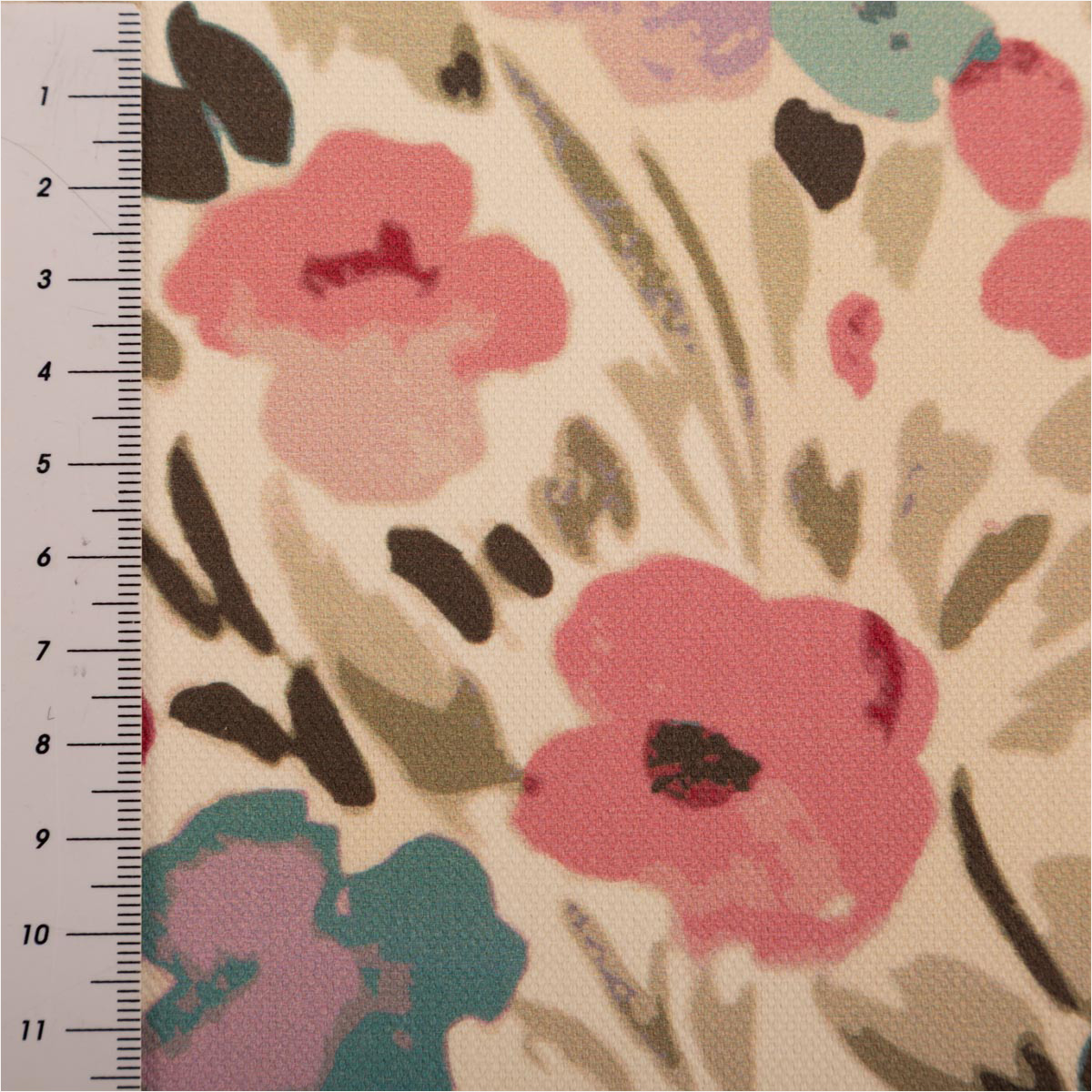 Dieser wunderschöne Dekostoff bringt mit seinem romantischen Aquarell-Blütendessin frischen Wind in dein Zuhause. Die sanften Farben in Rosa, Blau und Violett auf weißem Grund wirken lebendig und harmonisch zugleich – ideal für kreative Wohnideen mit natürlichem Charme.