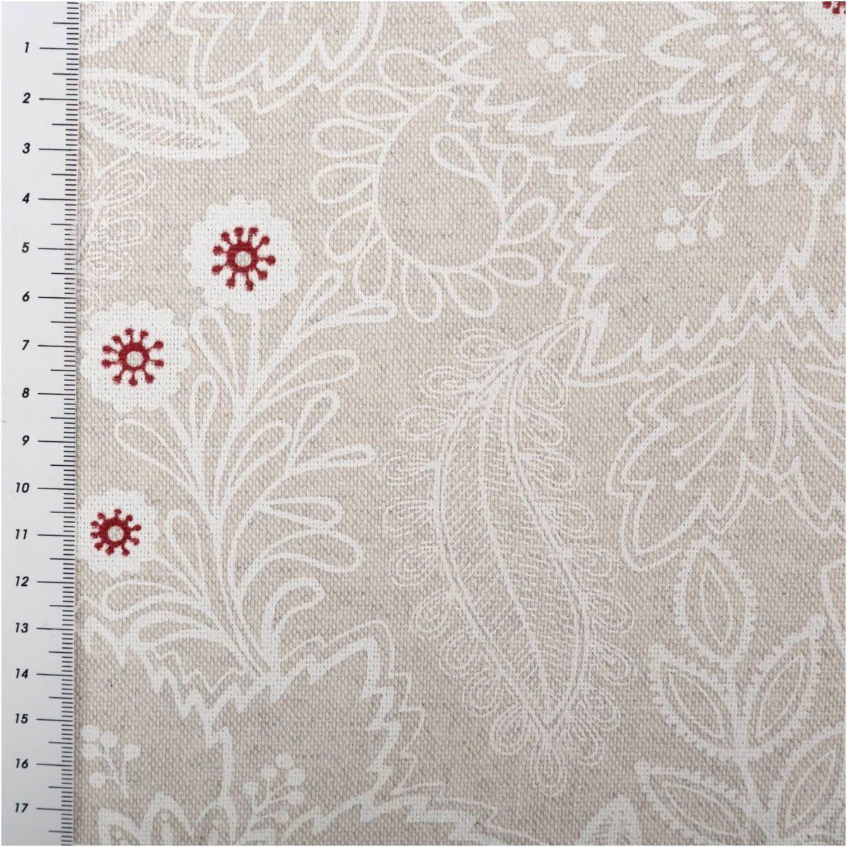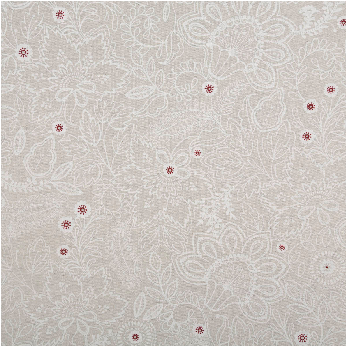 Vielseitiger Dekostoff mit floralen Ornamenten in Natur, Weiß & Rot
