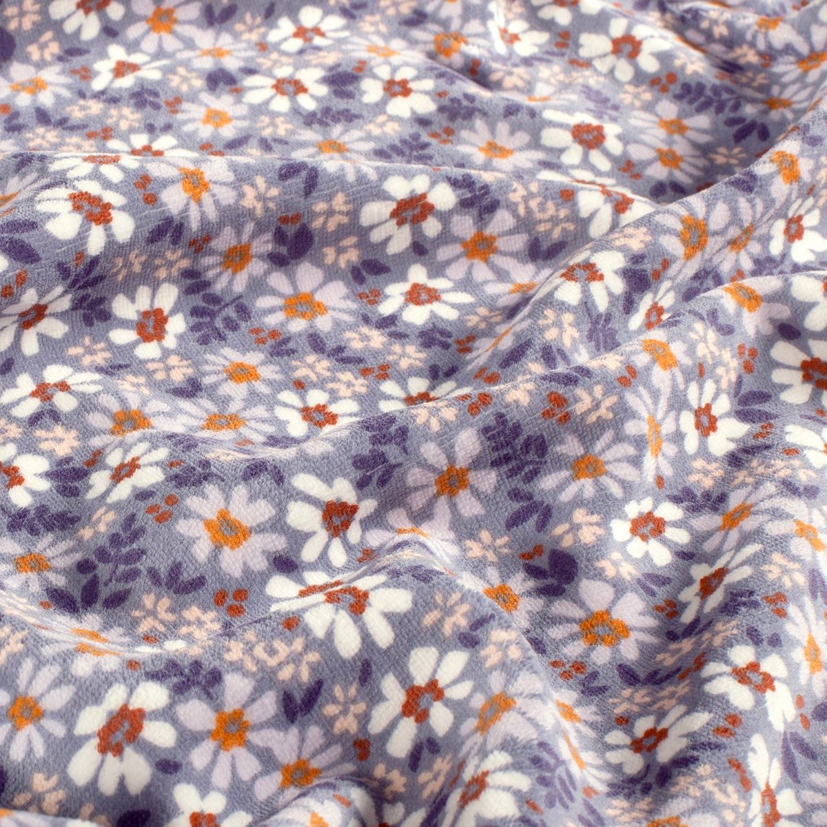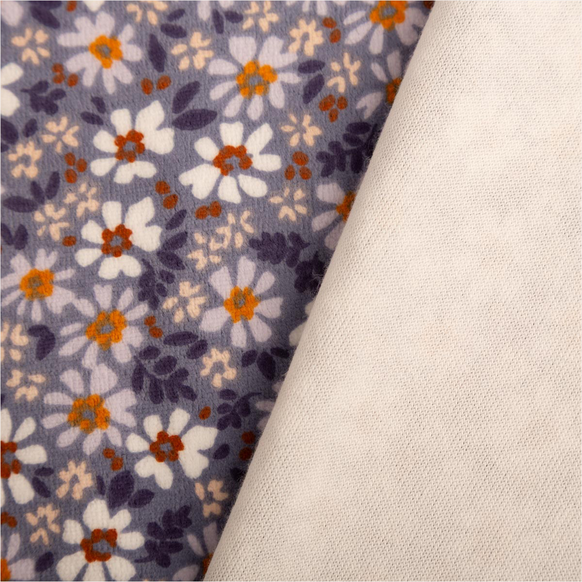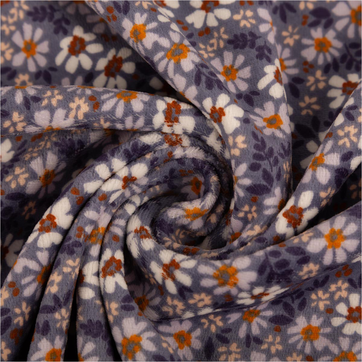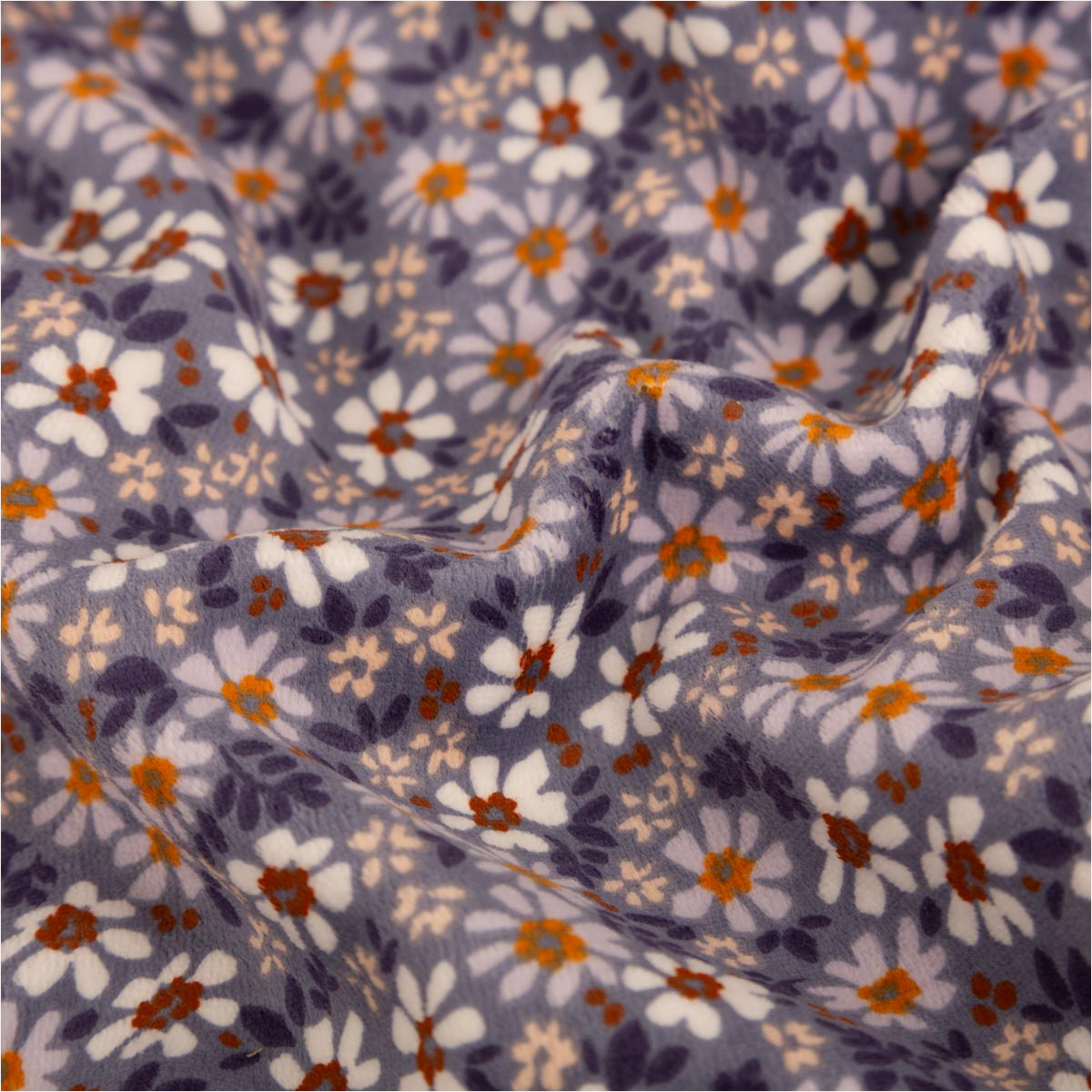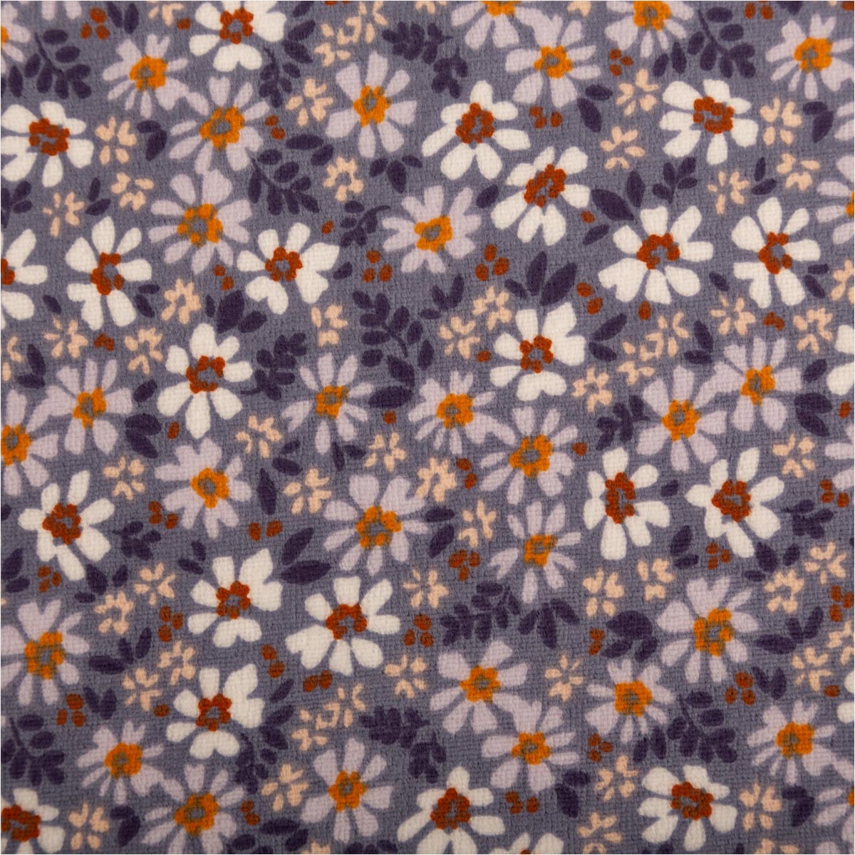 Dieser traumhaft weiche Nicki Stoff aus Baumwolle mit Velours-Oberfläche bringt Gemütlichkeit und Charme in jedes Nähprojekt. Das zarte Blümchendesign in Lila, Weiß und Orange sorgt für einen verspielten Look, während der Stoff dank seines hohen Baumwollanteils angenehm atmungsaktiv, hautfreundlich und pflegeleicht ist.