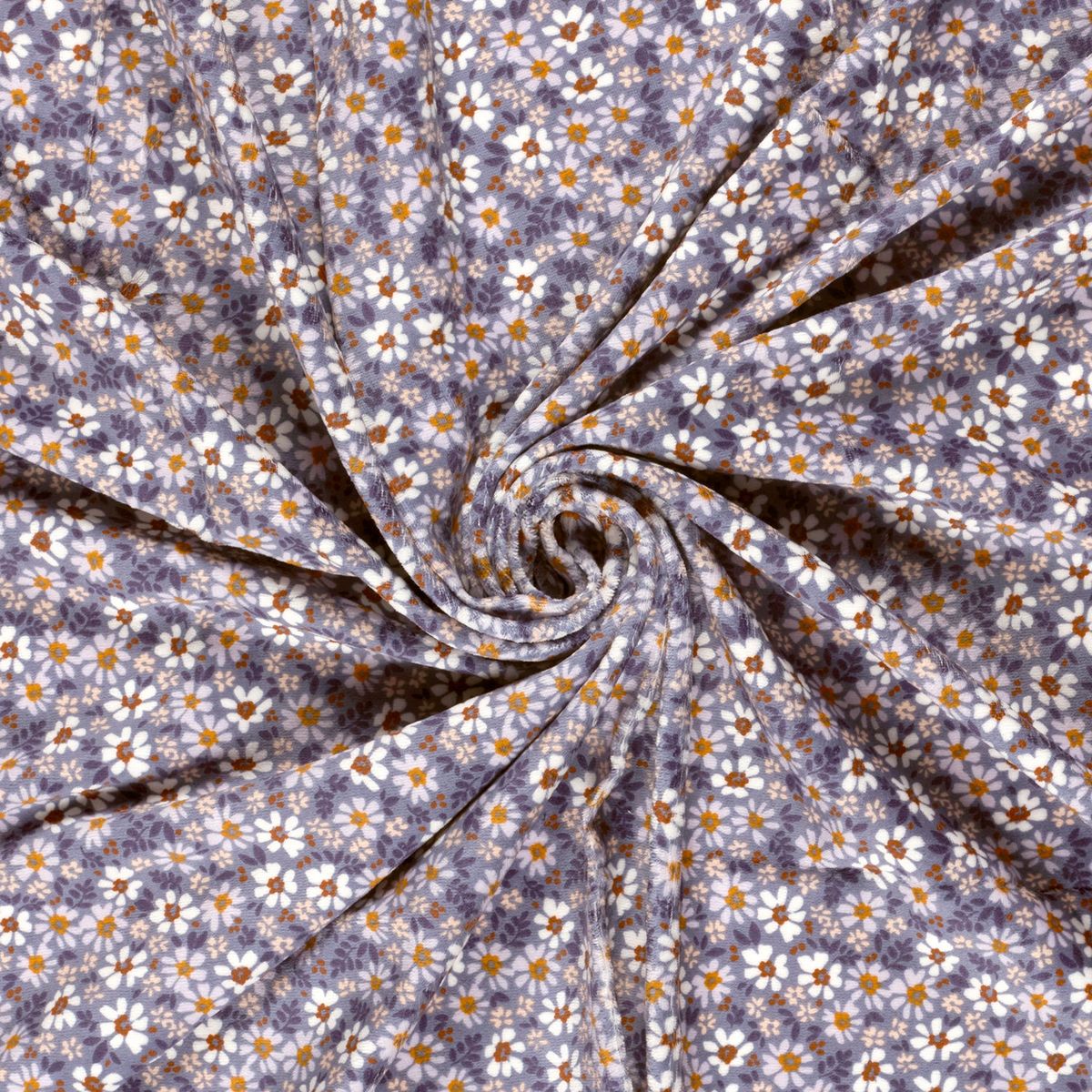 Nicki Stoff Velours Baumwolle lila mit Blümchen – samtig weich & vielseitig