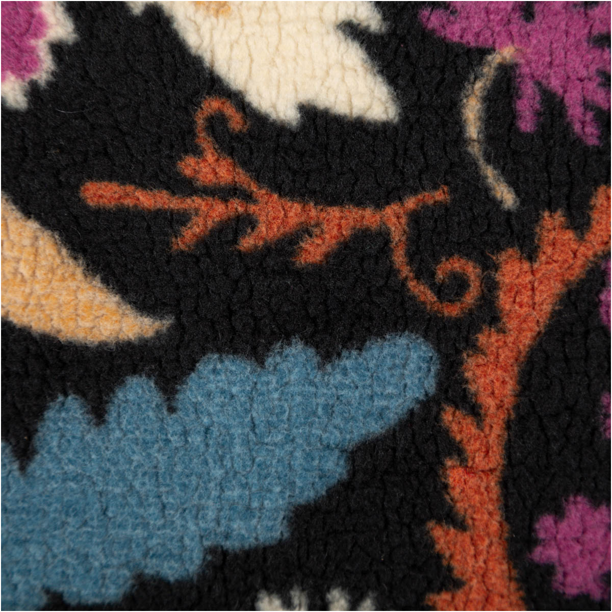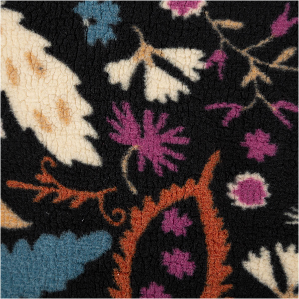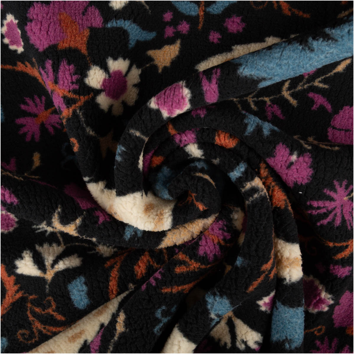 Teddy Stoff Plüsch ALIO – Blumen & Ornamente, Schwarz/Lila/Blau, 150 cm