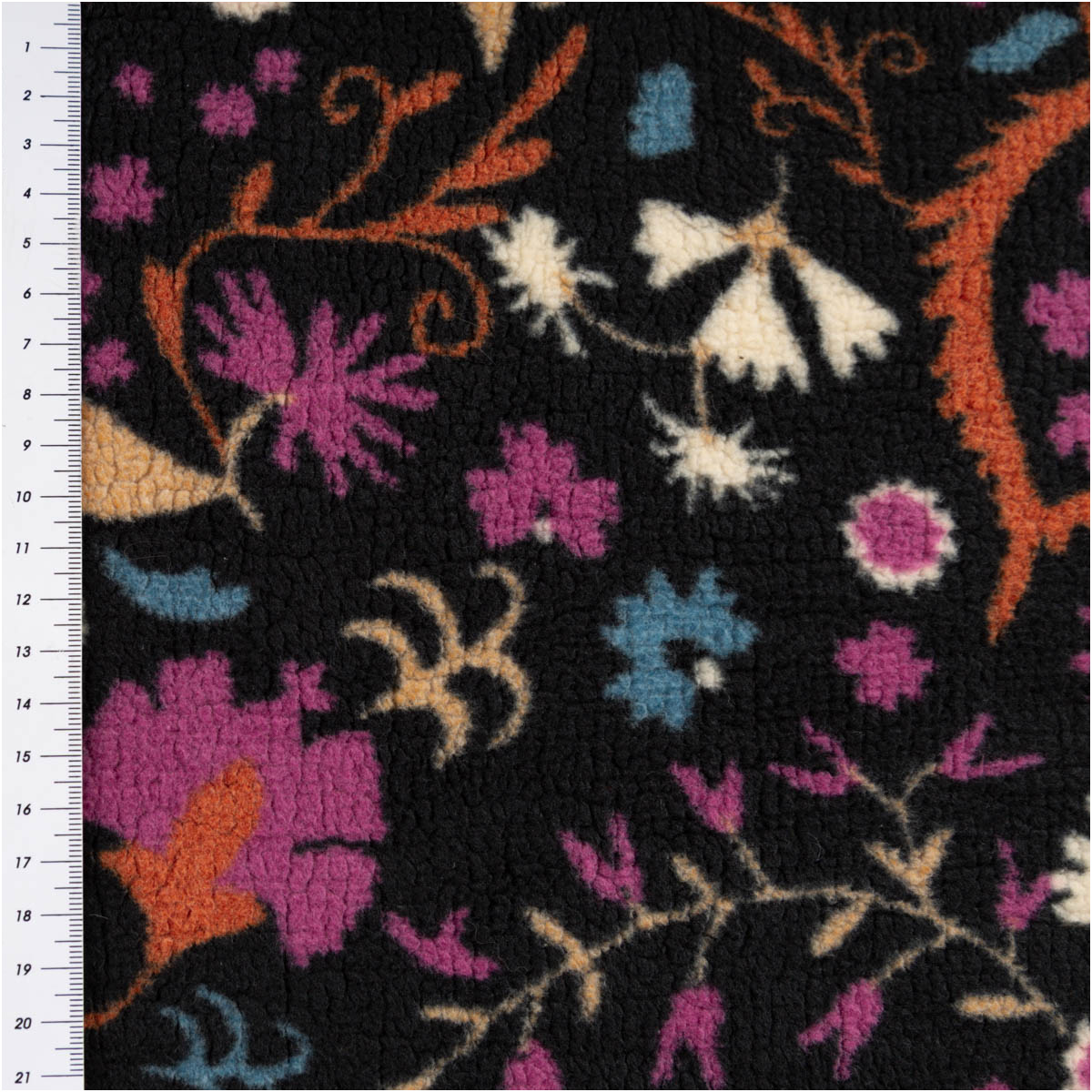 Teddy Stoff Plüsch ALIO Blumen Ornamente schwarz lila blau 1,50m Breite