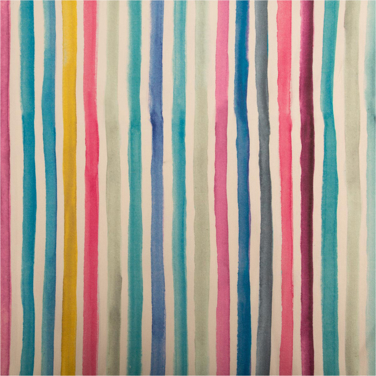 Dieser fröhliche Streifenstoff in hochwertiger Halbpanama-Qualität bringt Farbe und gute Laune in jedes Zuhause! Die harmonische Kombination aus Blau-, Pink-, Gelb- und Minttönen auf weißem Hintergrund erinnert an sonnige Sommertage und eignet sich perfekt für kreative Deko- und Nähprojekte.