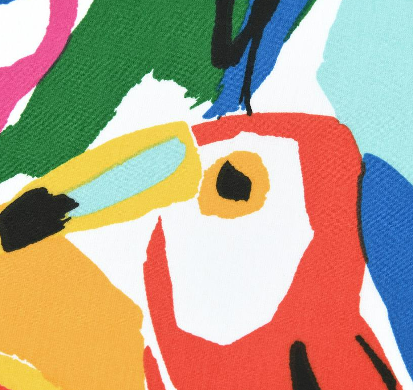 Der Dekostoff Costarica Papageien bringt mit seinem ausdrucksstarken französischen Dessin tropisches Flair in deine Nähprojekte. Die stilisiert gemalten Papageien in kräftigen Farben auf weißem Grund wirken modern, lebendig und künstlerisch. Durch die leichte Qualität mit ca. 125 g/qm fällt der Stoff schön weich und bleibt dabei formstabil.
