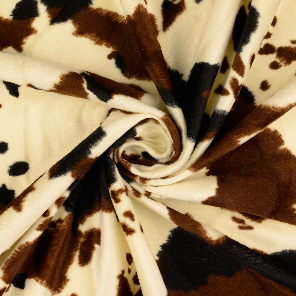 Weiches Kunstfell Velours mit realistischem Kuhflecken-Design