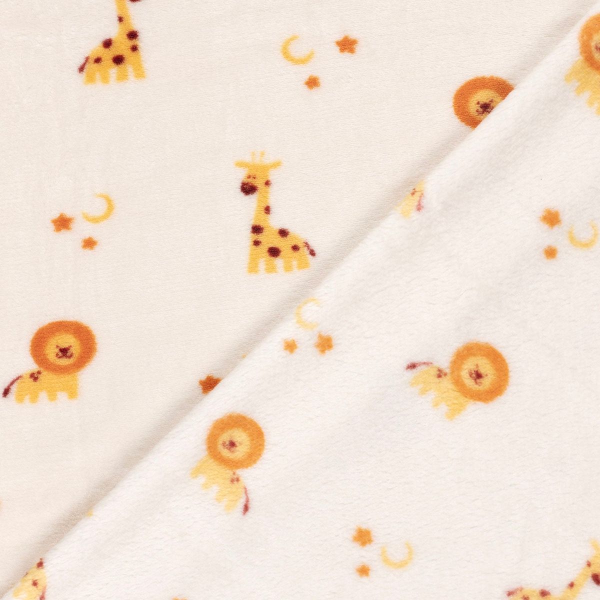 Fleece Stoff Giraffe Löwe wollweiß gelb 1,50m Breite