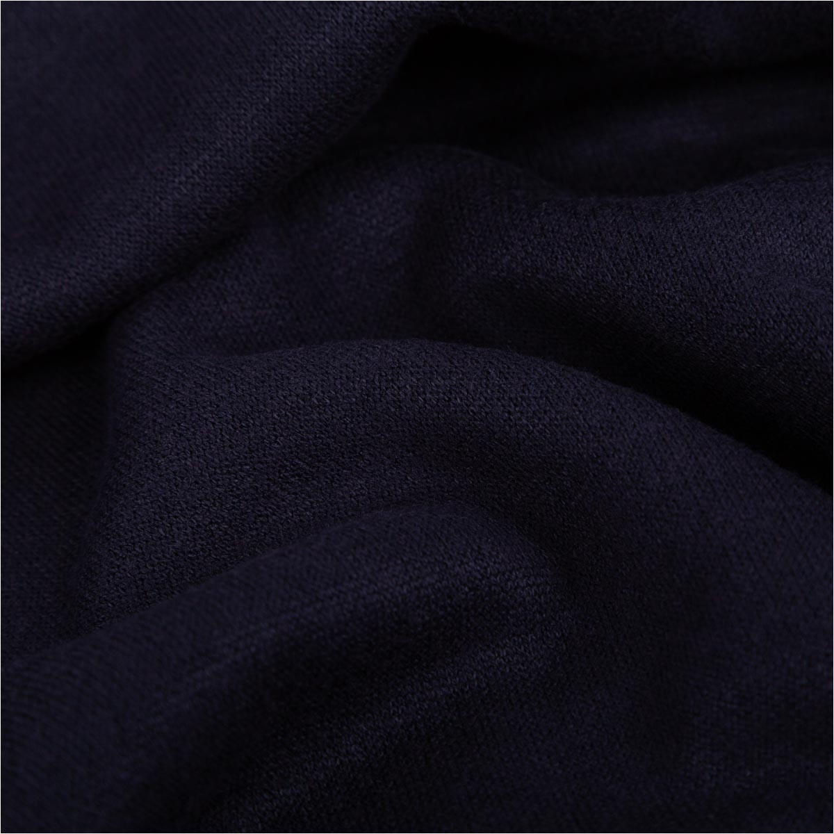 Durch die gebürstete Oberfläche entsteht eine besonders kuschelige Haptik, während die feine Melierung in Dunkelblau jedem Nähprojekt eine elegante Note verleiht.