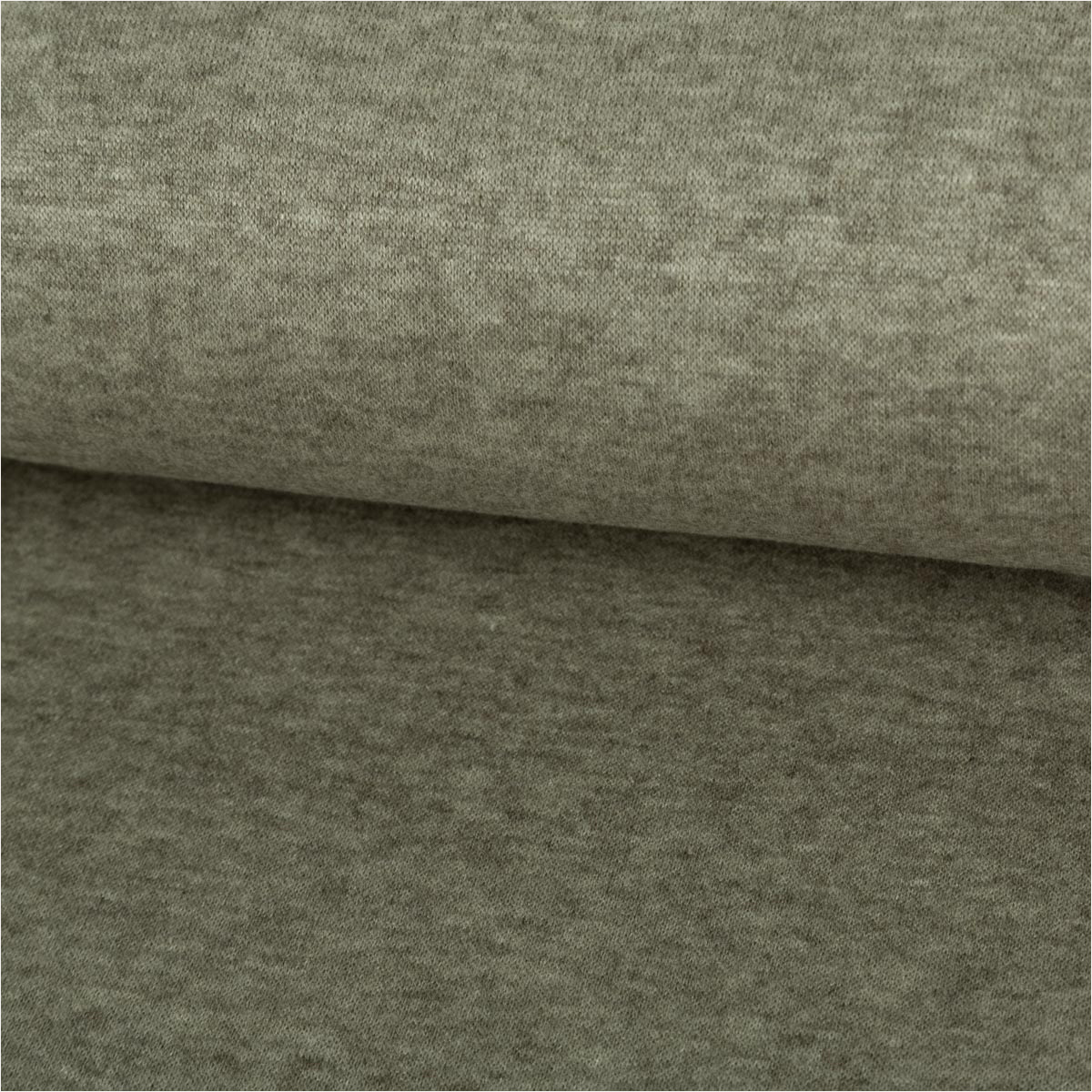 Durch die gebürstete Oberfläche entsteht eine besonders kuschelige Haptik, während die feine Melierung in Olivgrün jedem Nähprojekt eine elegante Note verleiht.