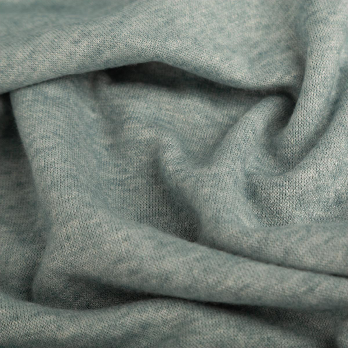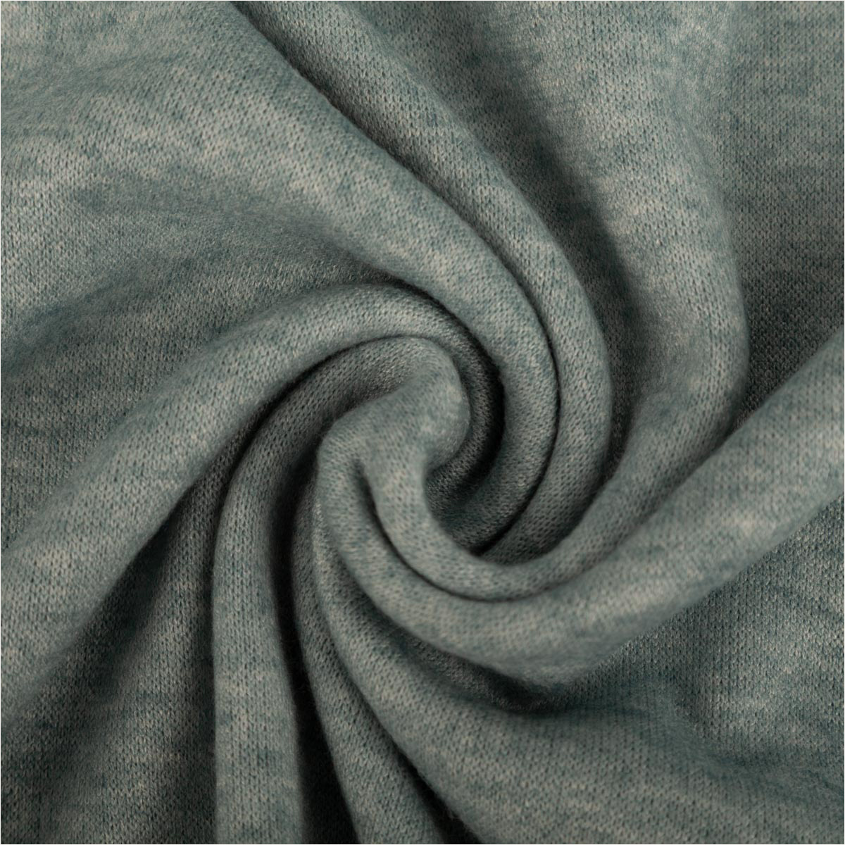 Durch die gebürstete Oberfläche entsteht eine besonders kuschelige Haptik, während die feine Melierung in Türkis jedem Nähprojekt eine elegante Note verleiht.