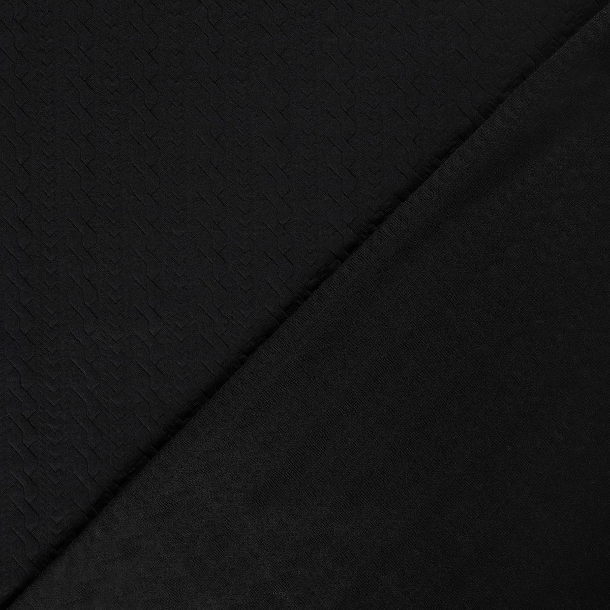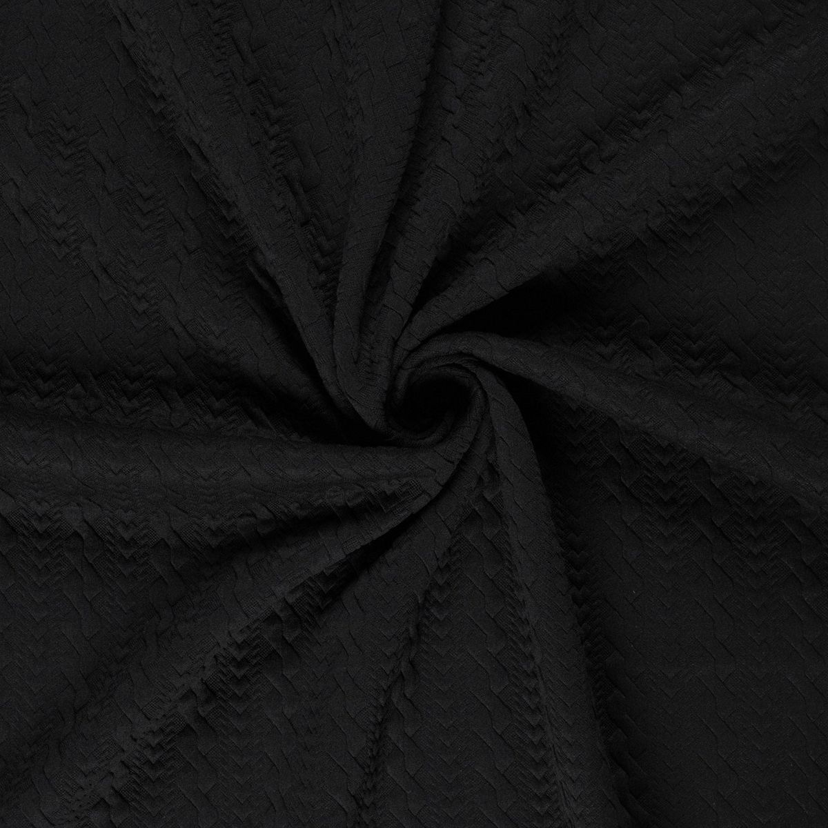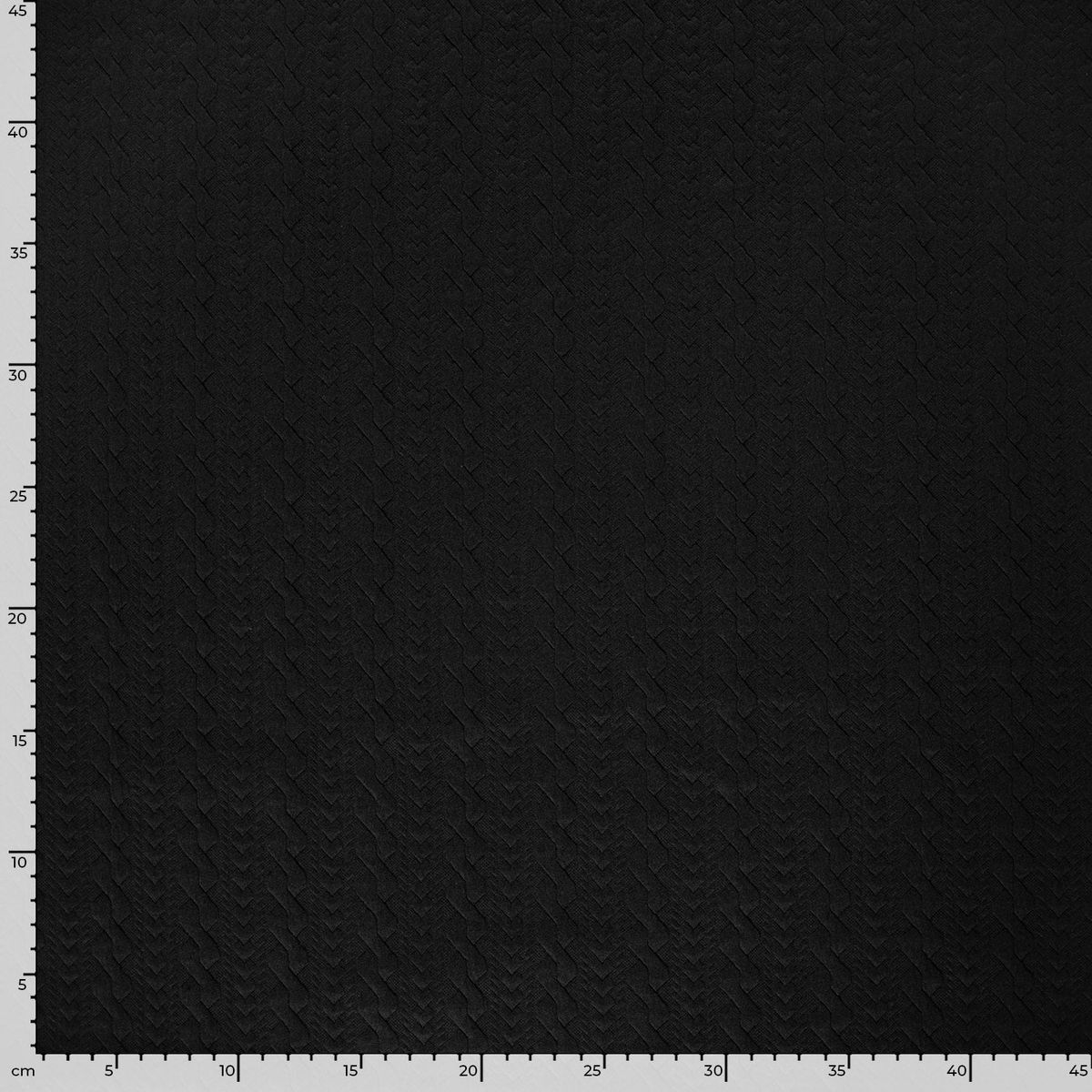 Elastischer Strickstoff mit plastischem Zopfmuster in Schwarz