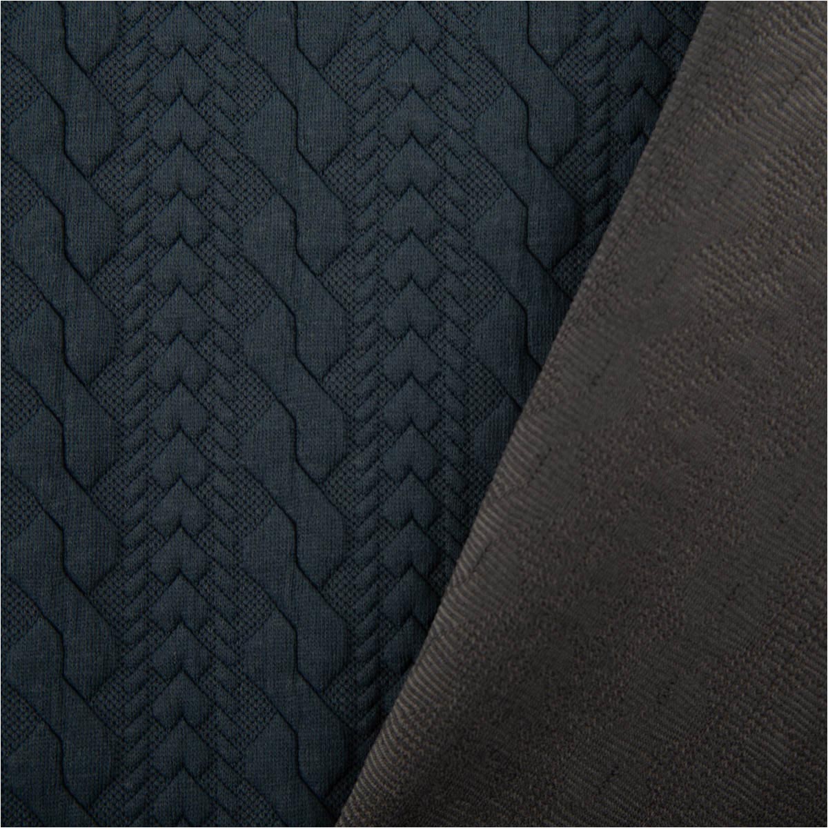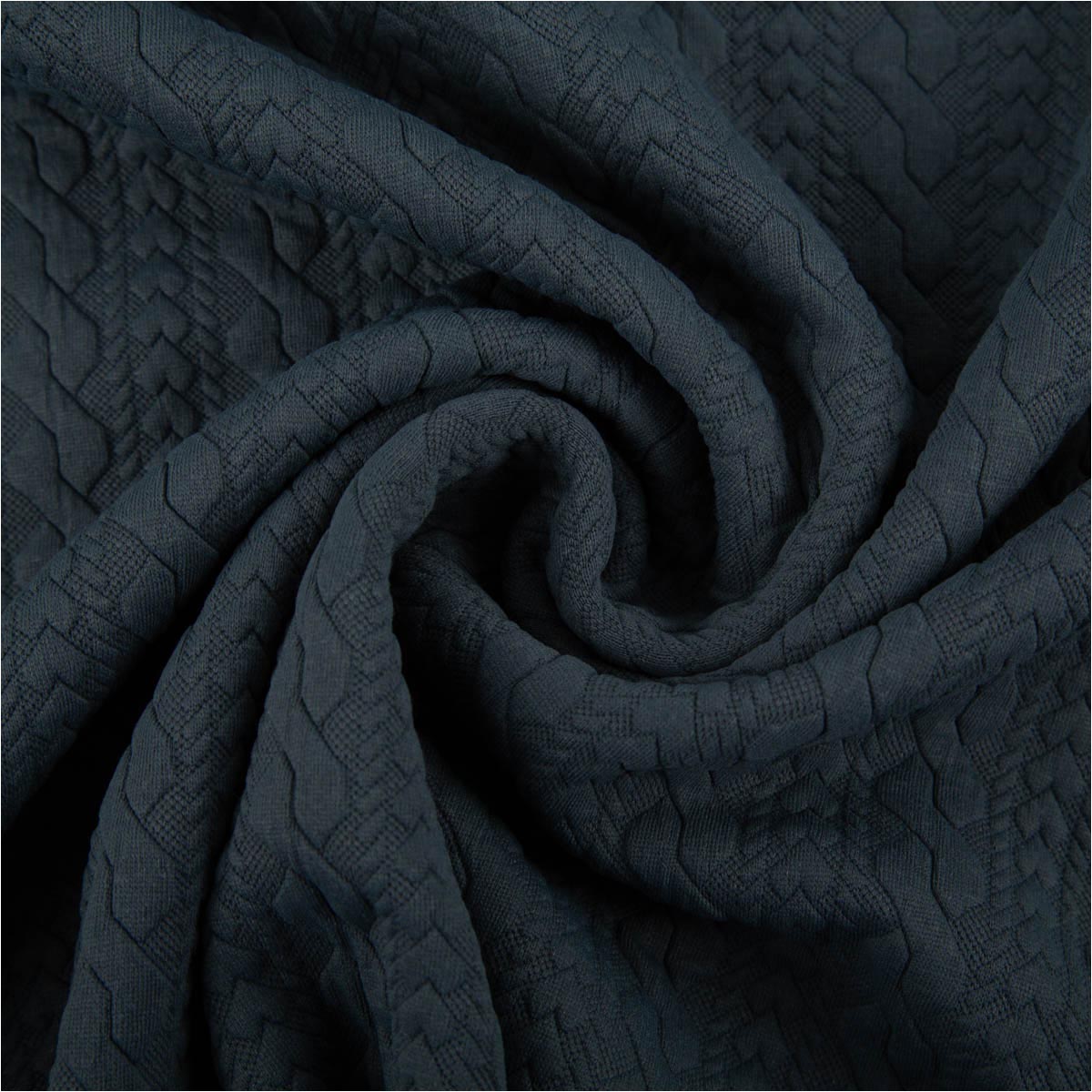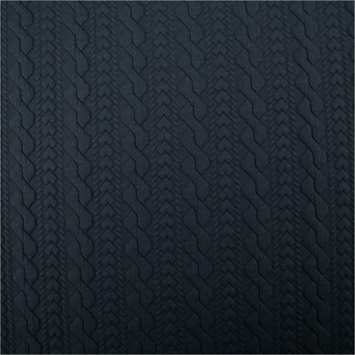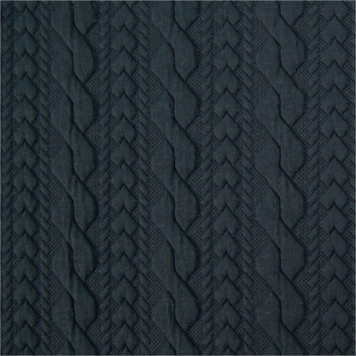 Elastischer Strickstoff mit plastischem Zopfmuster in Stahlblau
