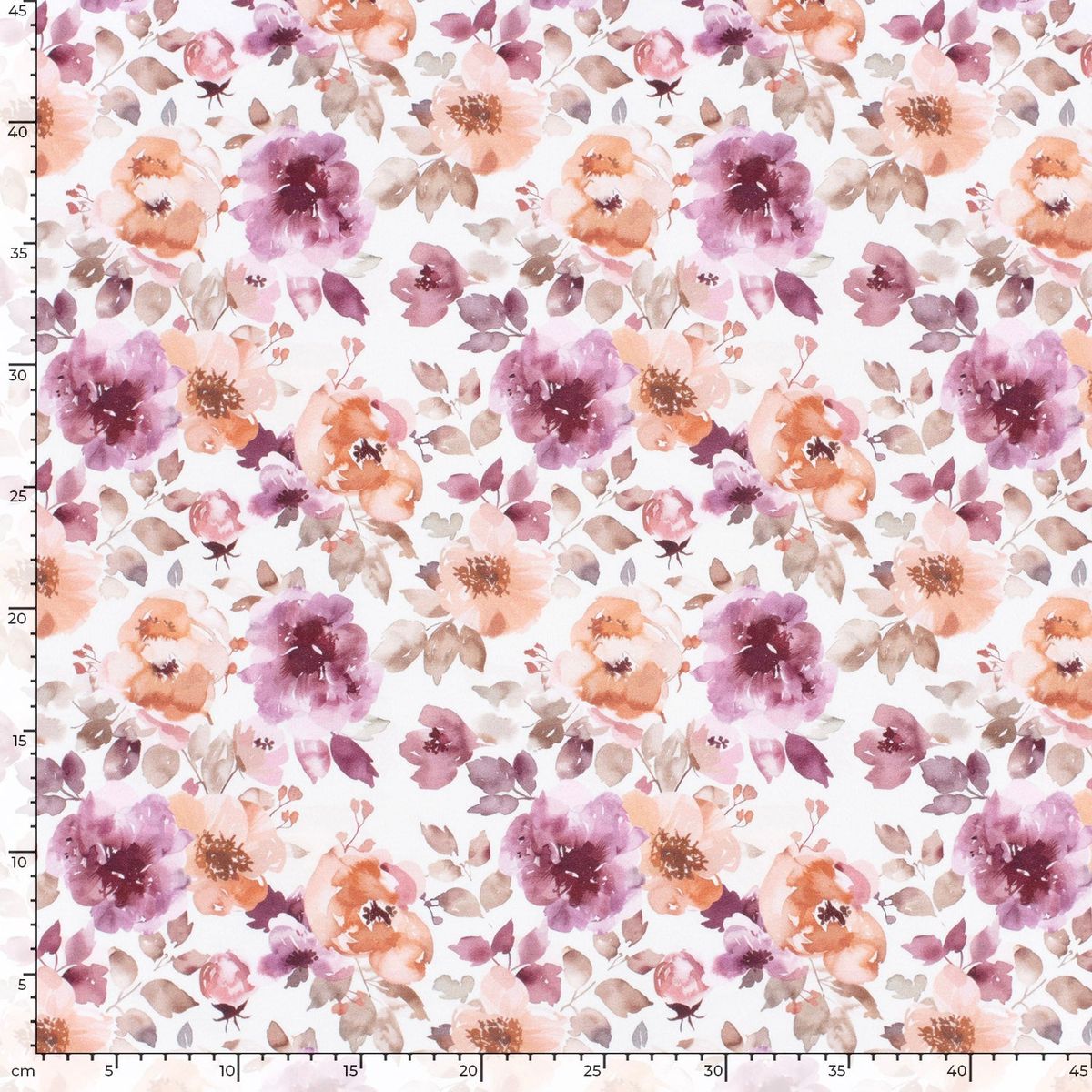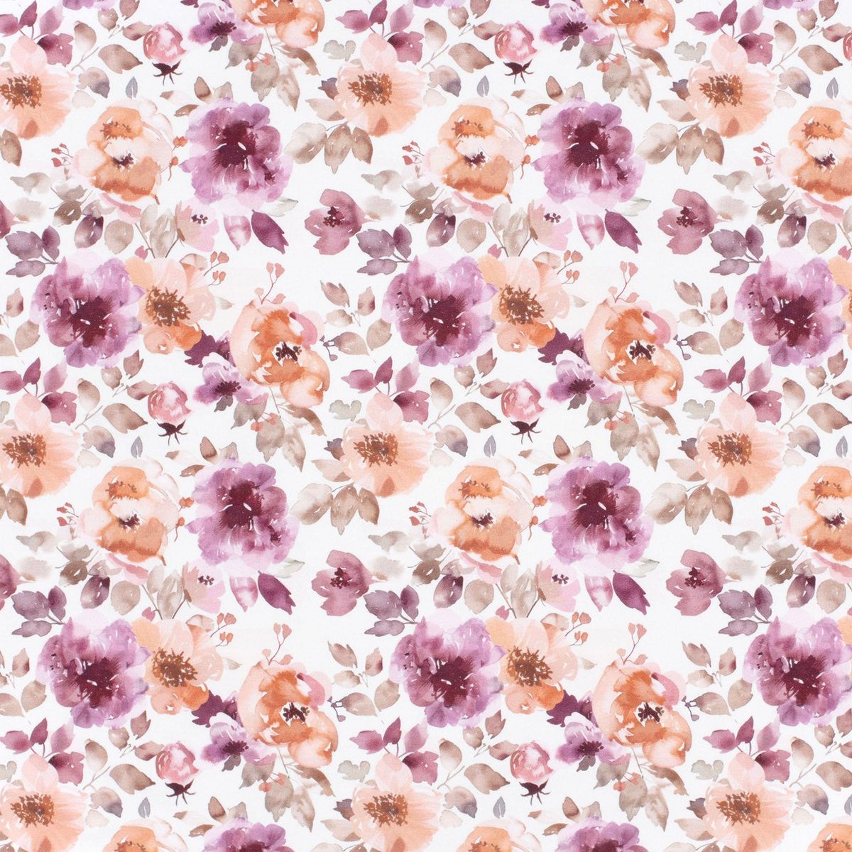 Kuschelig weicher French Terry mit gebürsteter Innenseite – elastisch, atmungsaktiv und formstabil. Der hochwertige Blumen-Digitaldruck in Rosatönen macht deine Cozy-Looks und Home-Projekte zum Hingucker.