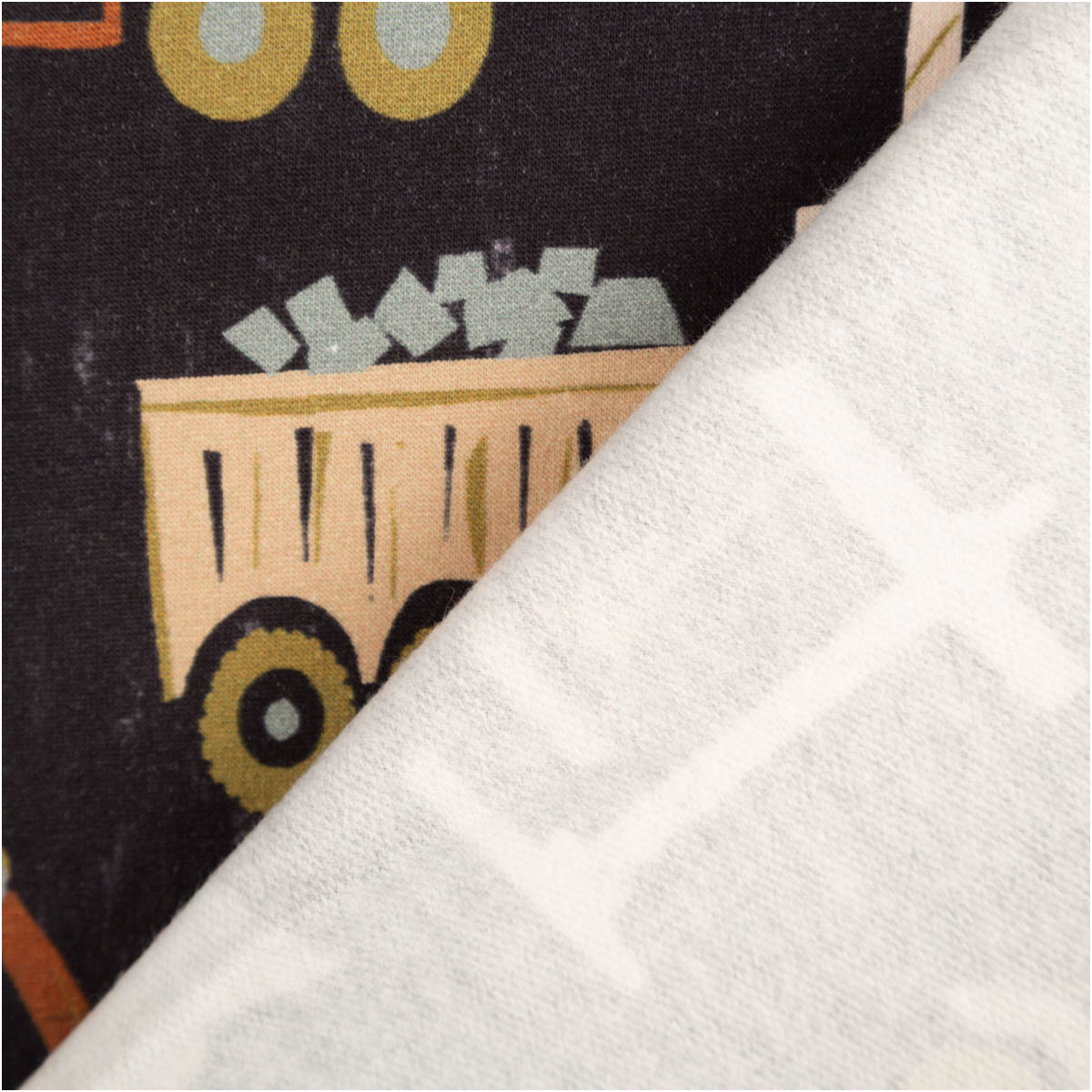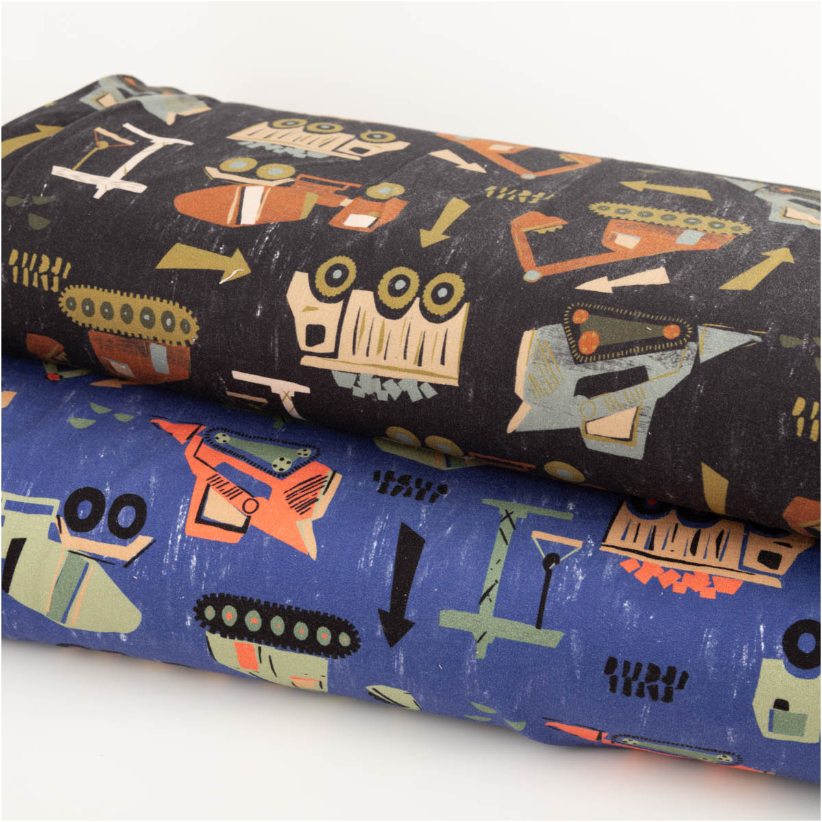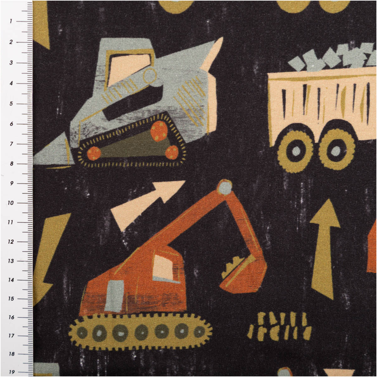Sweatstoff aus Baumwolle Baufahrzeuge Digitladruck marineblau braun grün 1,48m Breite