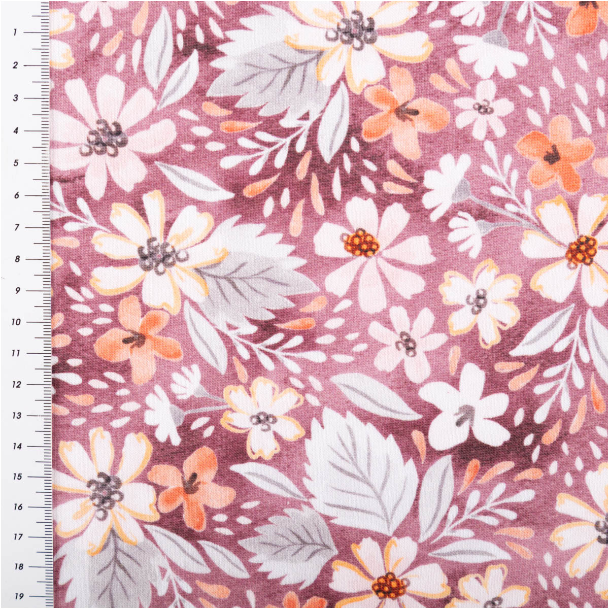 Sweatstoff Baumwolle Blumen Digitaldruck rosa 155cm breit