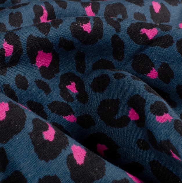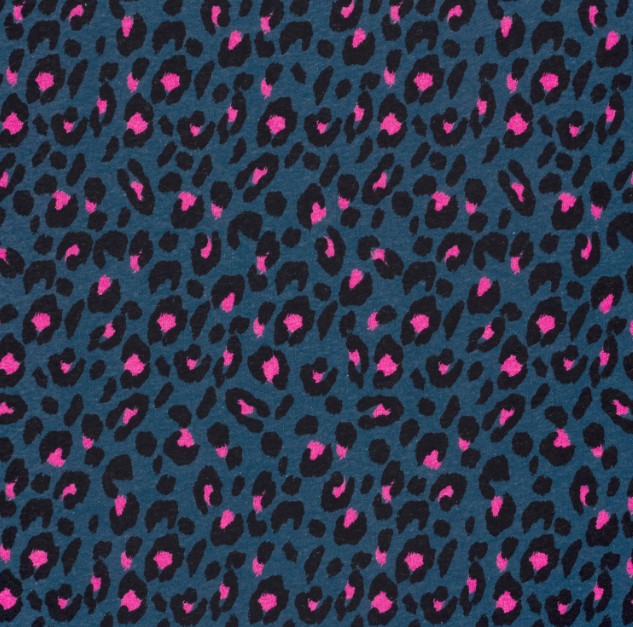 Leoprint in Blau/Pink: kräftiger Digitaldruck mit hohem Kontrast