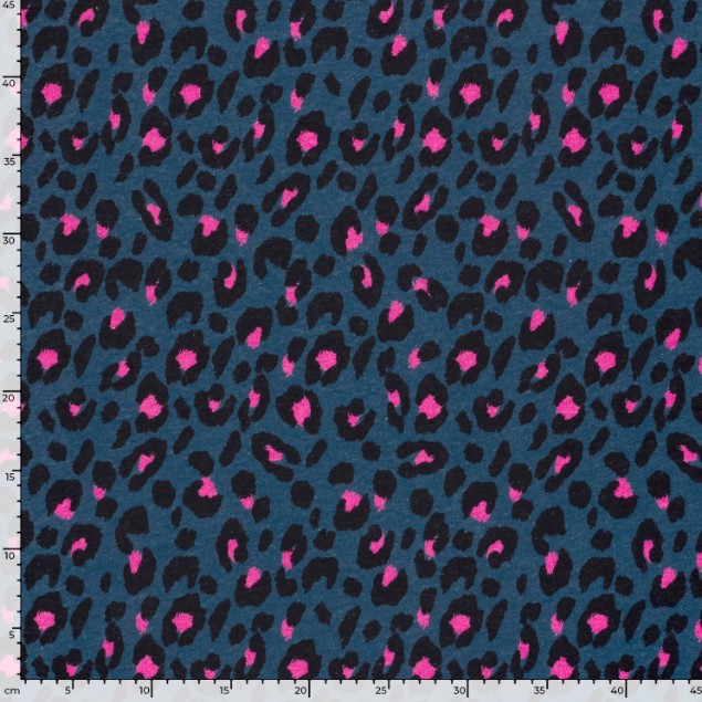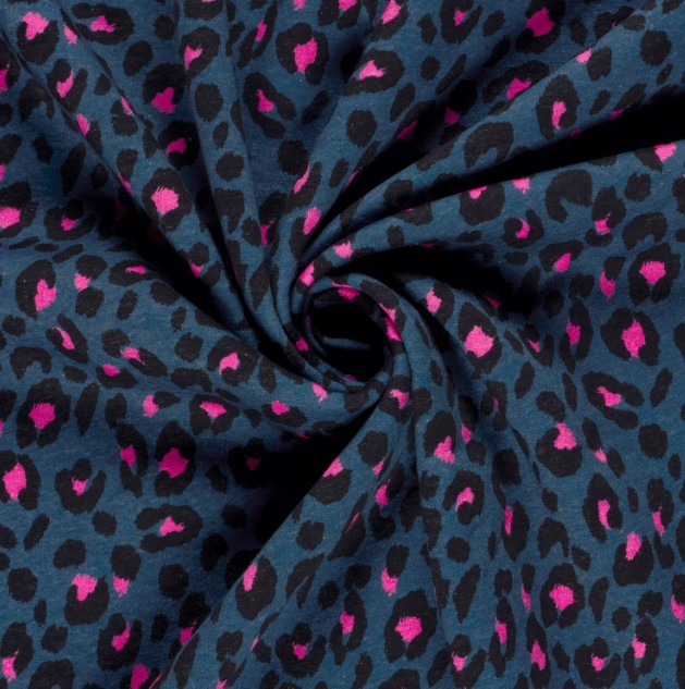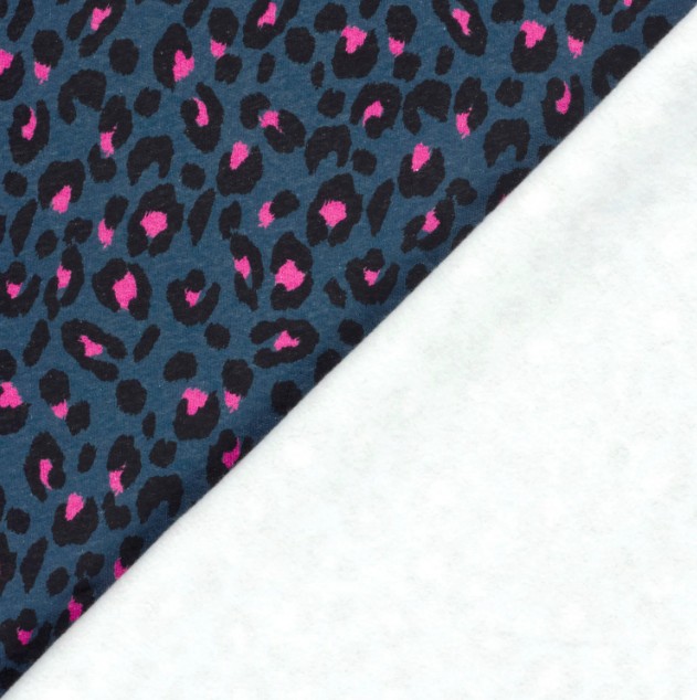 Sweatstoff Leo Digitaldruck Blau/Pink – 1,55 m Breite, Baumwolle, warm & weich