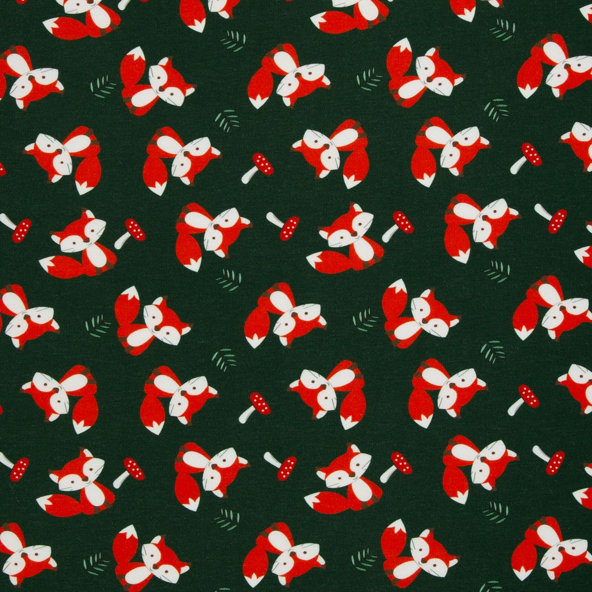 Sweatstoff Füchse mit angerauter Innenseite dunkelgrün orange 1,47m Breite