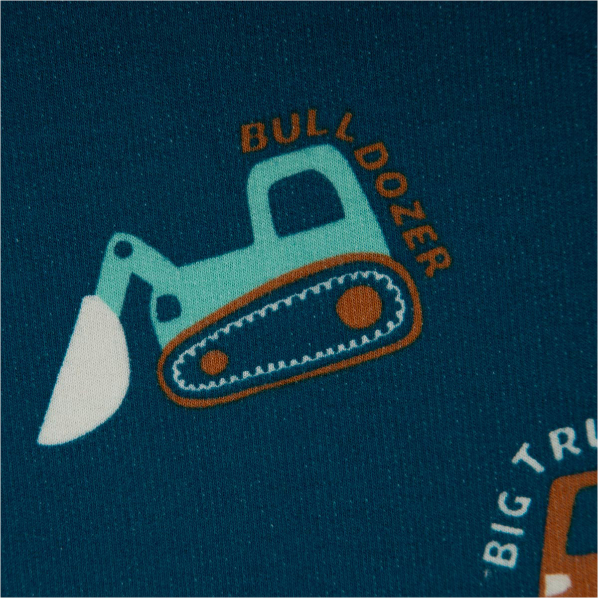 Sweatstoff Soft Sweat aus Baumwolle Baufahrzeuge petrol orange 1,48m Breite