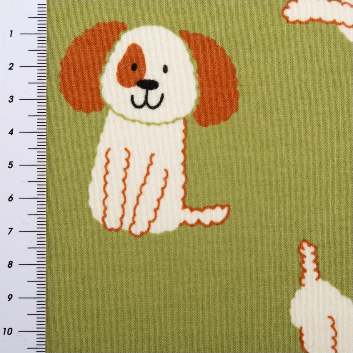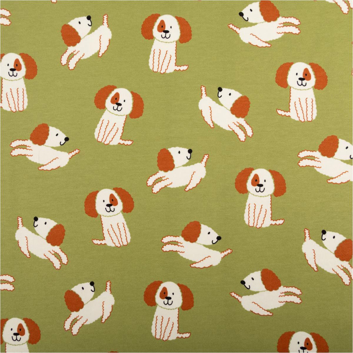 Dieser hochwertige Soft Sweat Stoff mit Hunde-Motiven ist Teil der beliebten Poppy Fabrics Kollektion und eignet sich ideal für gemütliche Nähprojekte für Kinder und Erwachsene. Auf grünem Grund sind niedliche Hunde in Ecru- und Brauntönen verteilt – verspielt, zeitlos und wunderbar kombinierbar.