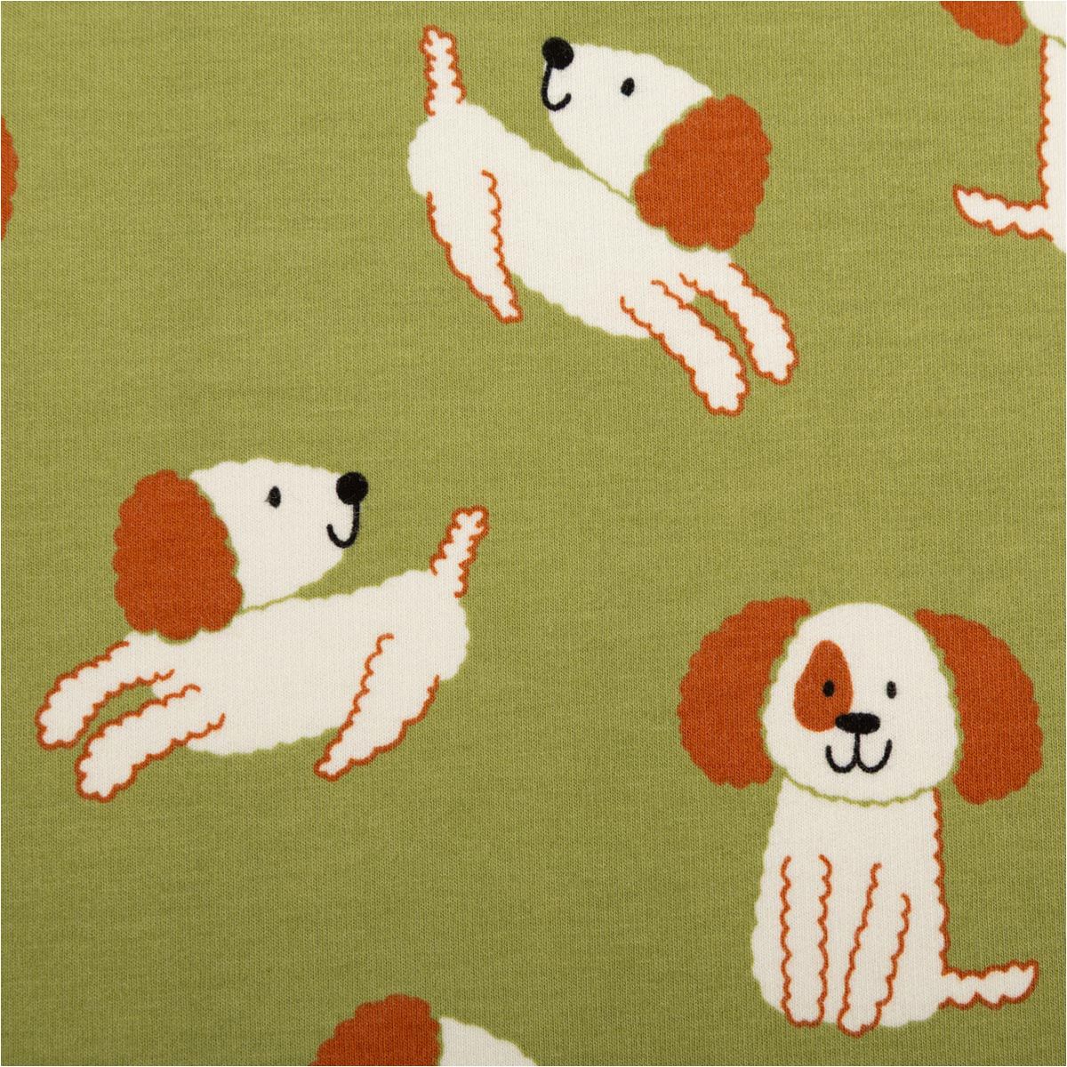 Sweatstoff Soft Sweat Baumwolle Hunde grün ecru – 1,48 m breit