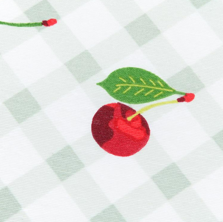 Dieser abwaschbare Tischdeckenstoff mit Acrylbeschichtung verbindet Funktionalität mit einem charmanten, französischen Kirsch-Dessin. Leuchtend rote Kirschen treffen auf ein zartes Rauten-Muster in Weiß und Grün – ein frischer Look für Küche, Esszimmer und Garten. Dank der Beschichtung ist der Stoff fleckabweisend und lässt sich im Alltag ganz einfach mit einem feuchten Tuch reinigen.