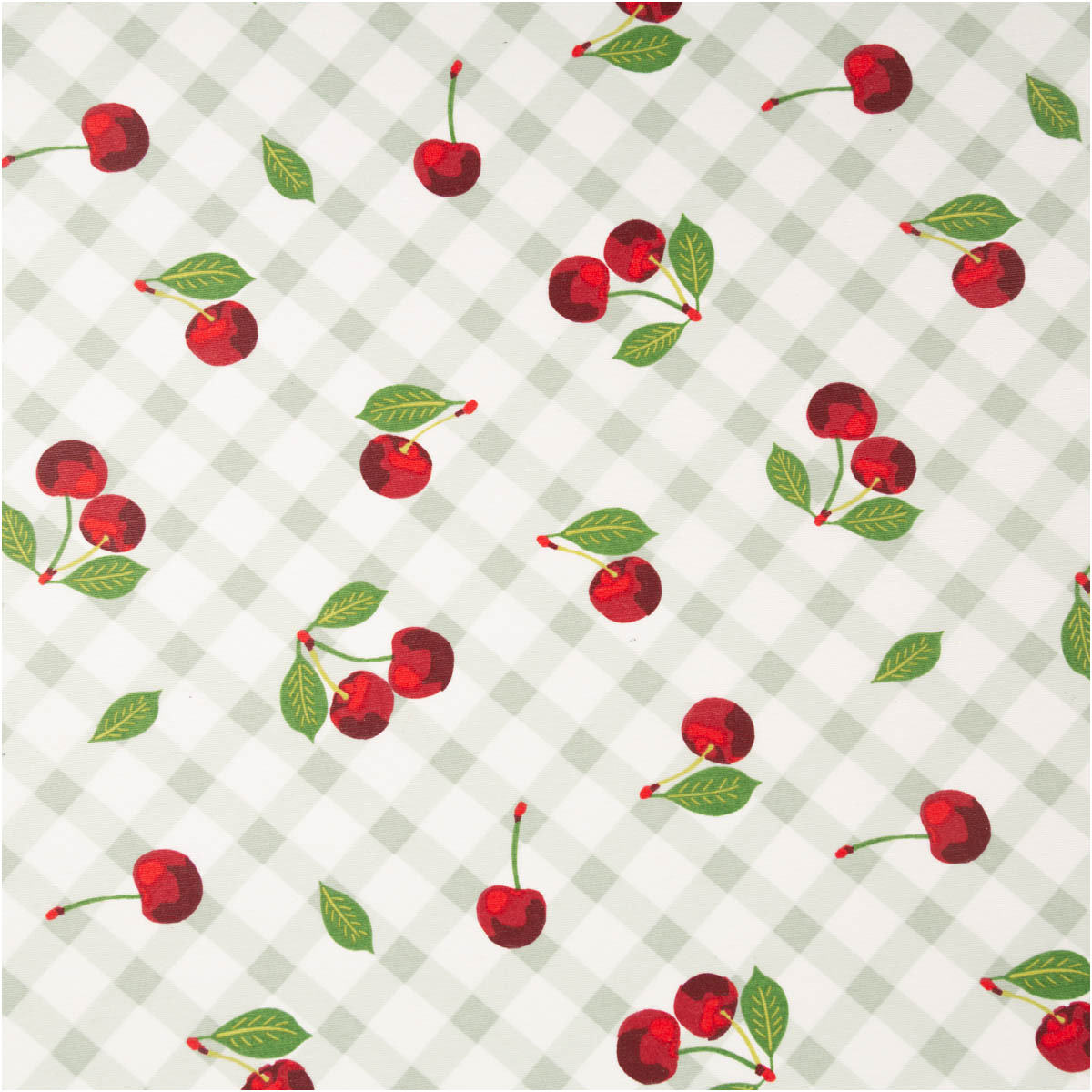 Tischdeckenstoff abwaschbar mit Acrylbeschichtung – Kirschen & Rauten