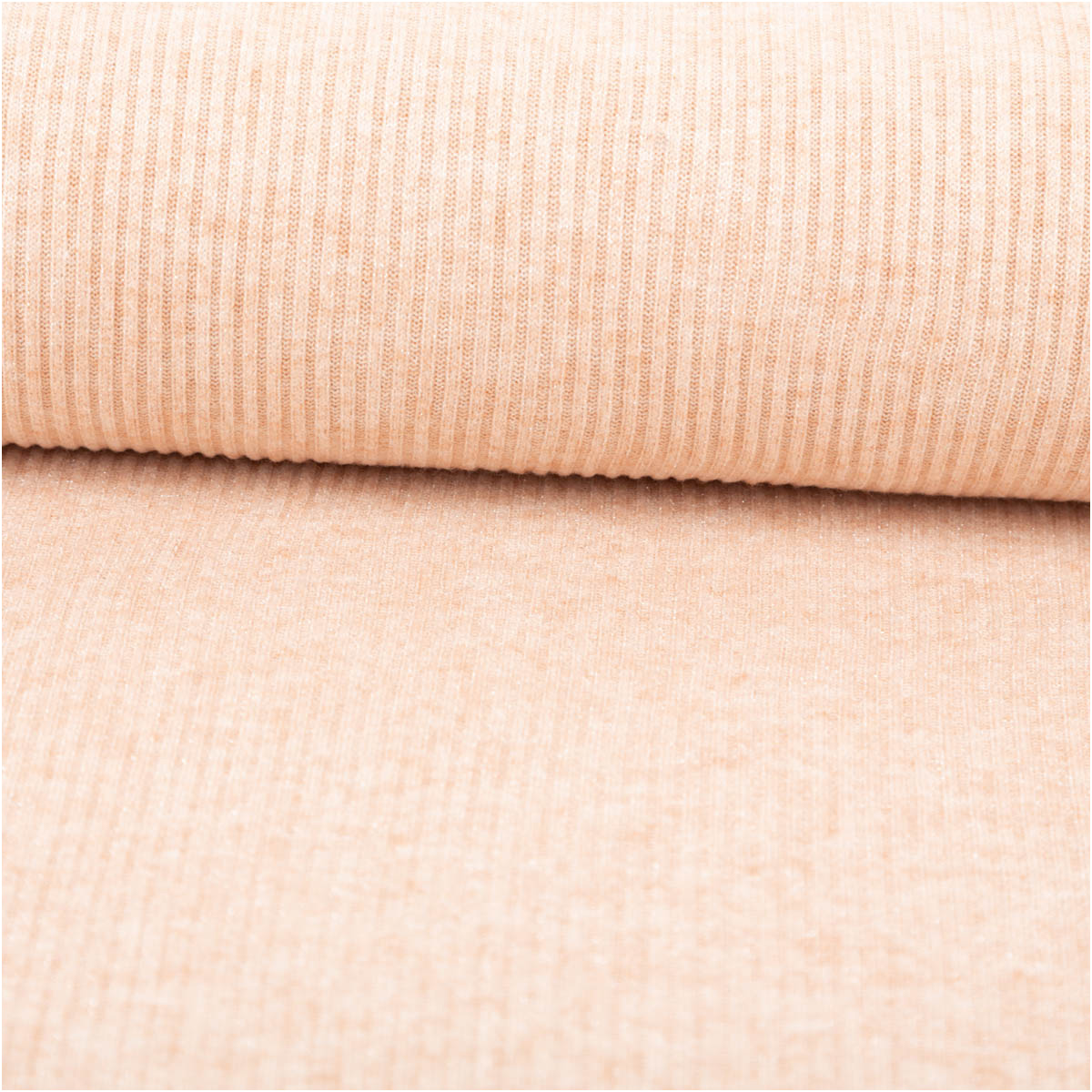 du willst es warm und gemütlich? Dieser schöne Rib Jersey Strickstoff in Rosa bringt mit seinen Glitzereffkten einen Hauch Glamour in deine Garderobe und in dein Zuhause. Die Viskose-Mischung fühlt sich angenehm weich an und gibt dank Elastizität komfortabel nach.