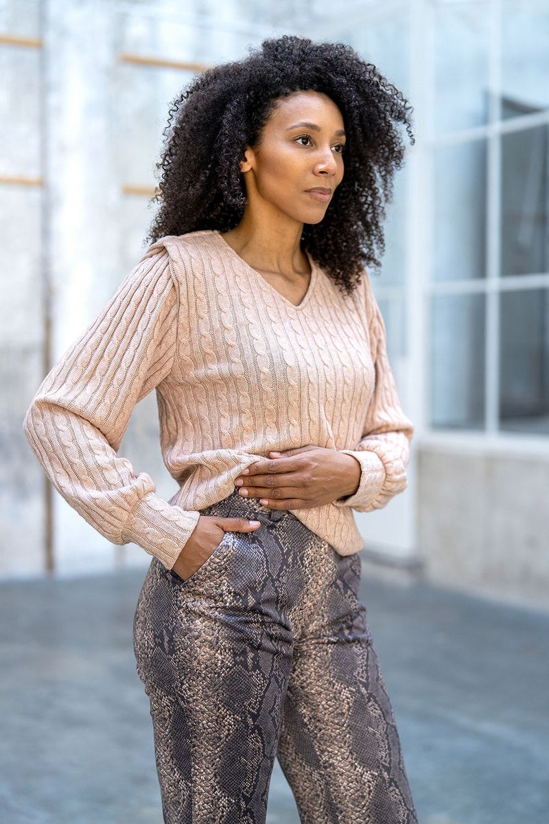 Struktur: plastisches Zopfmuster, elastischer Strick