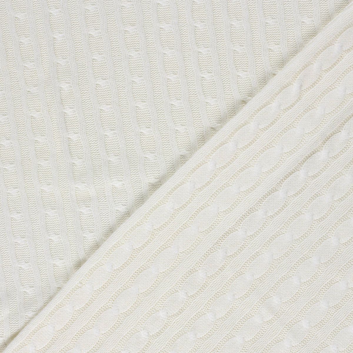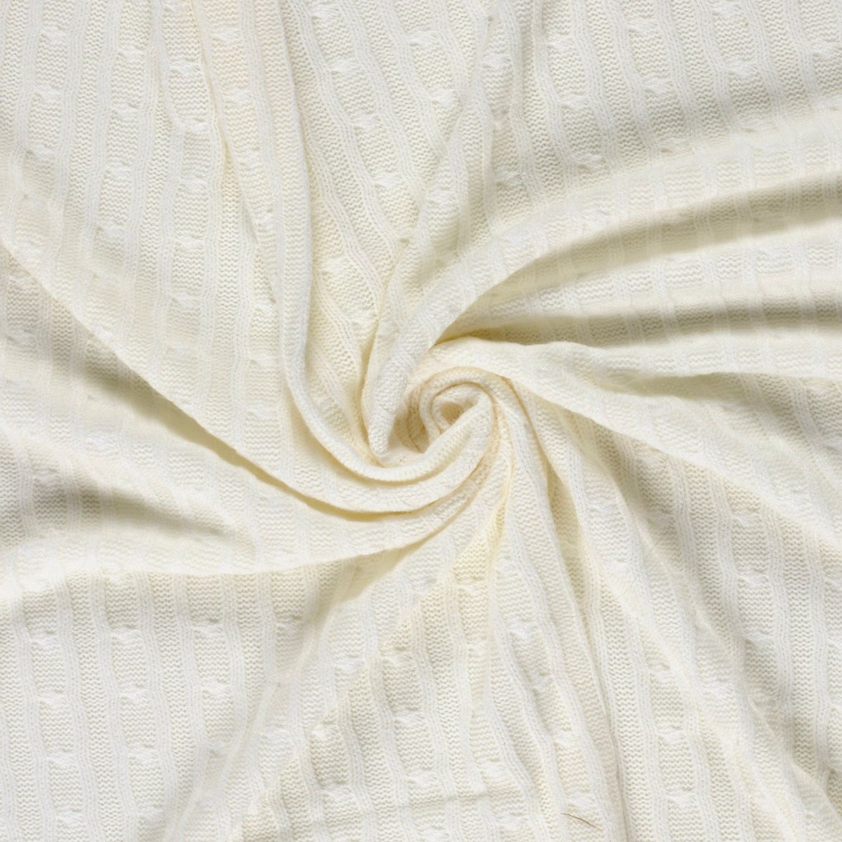 Strickstoff Zopfmuster Viskose wollweiß – schwere Qualität, 140 cm Breite