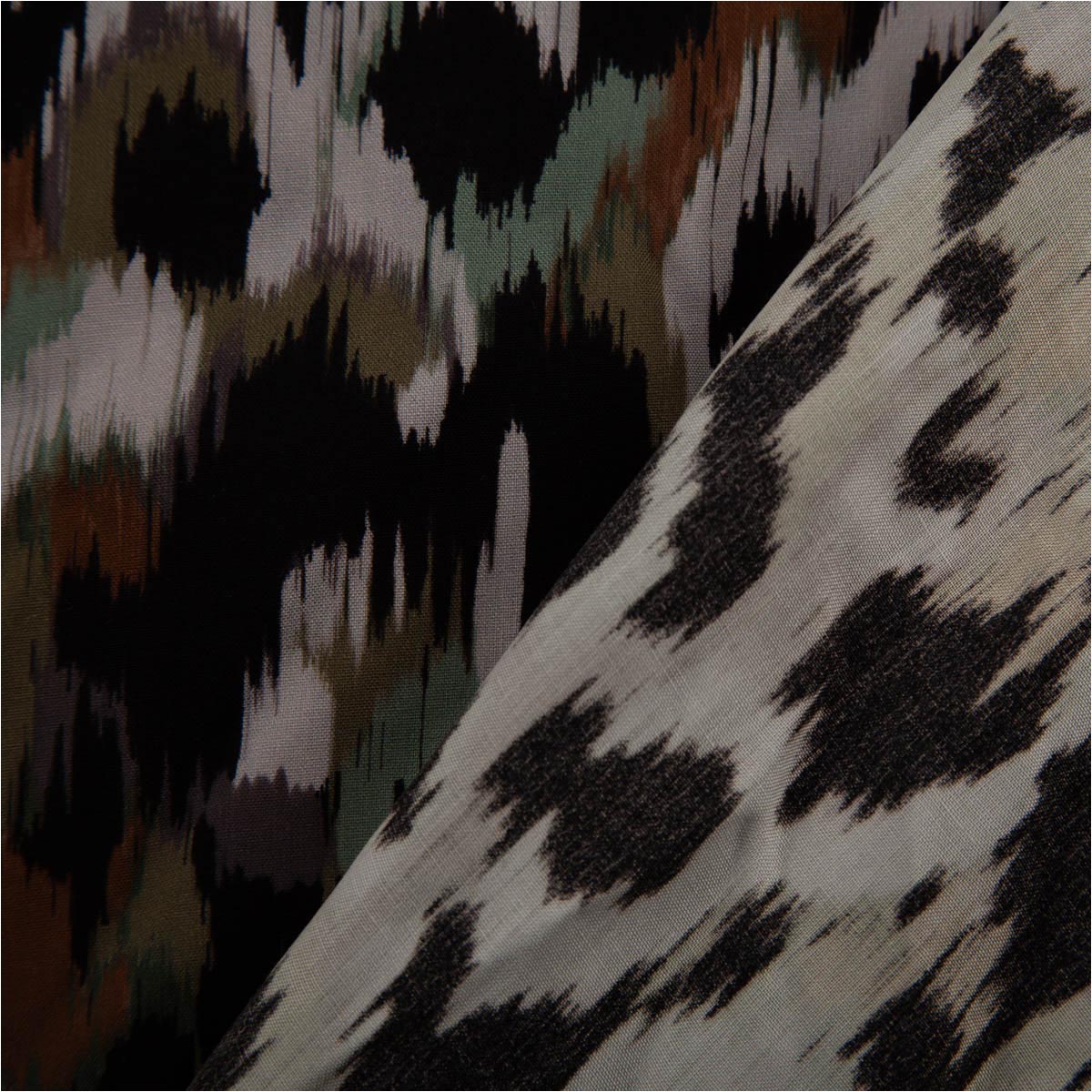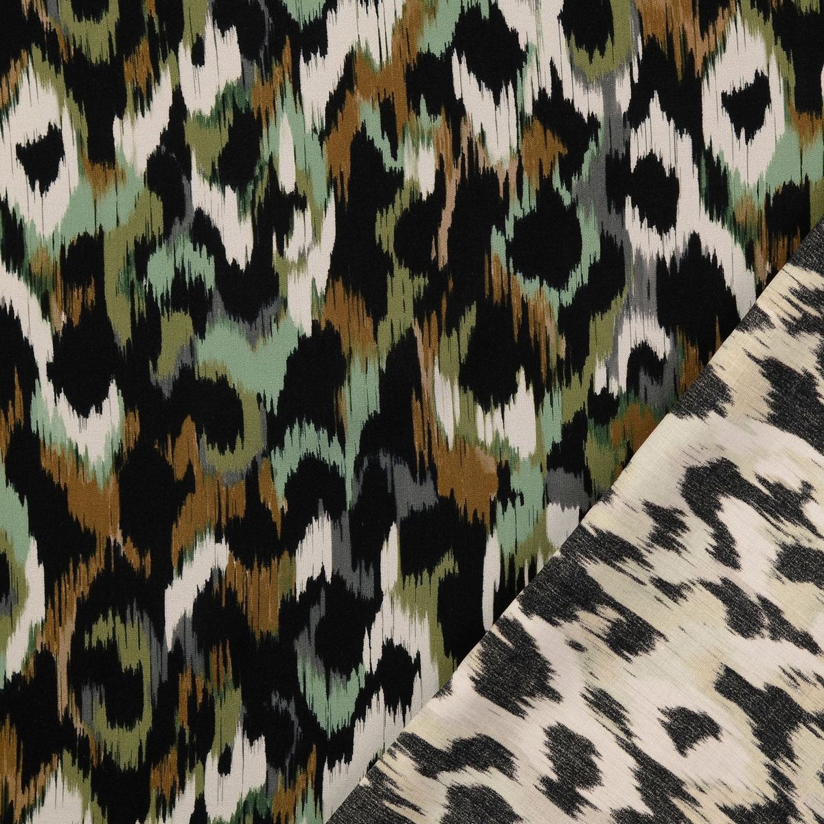Design: abstrakter Flecken-Digitaldruck in Grün/Braun/Schwarz/Beige