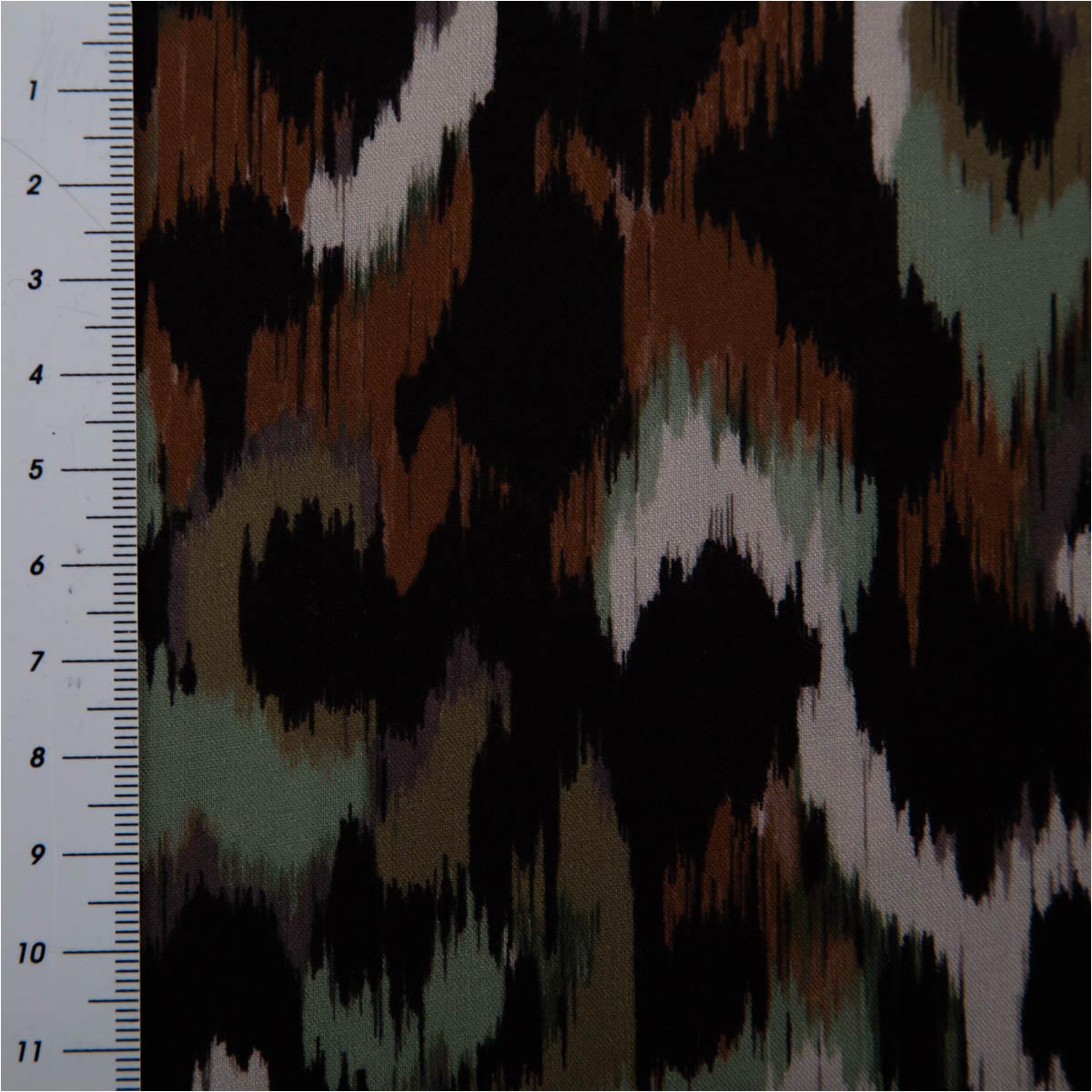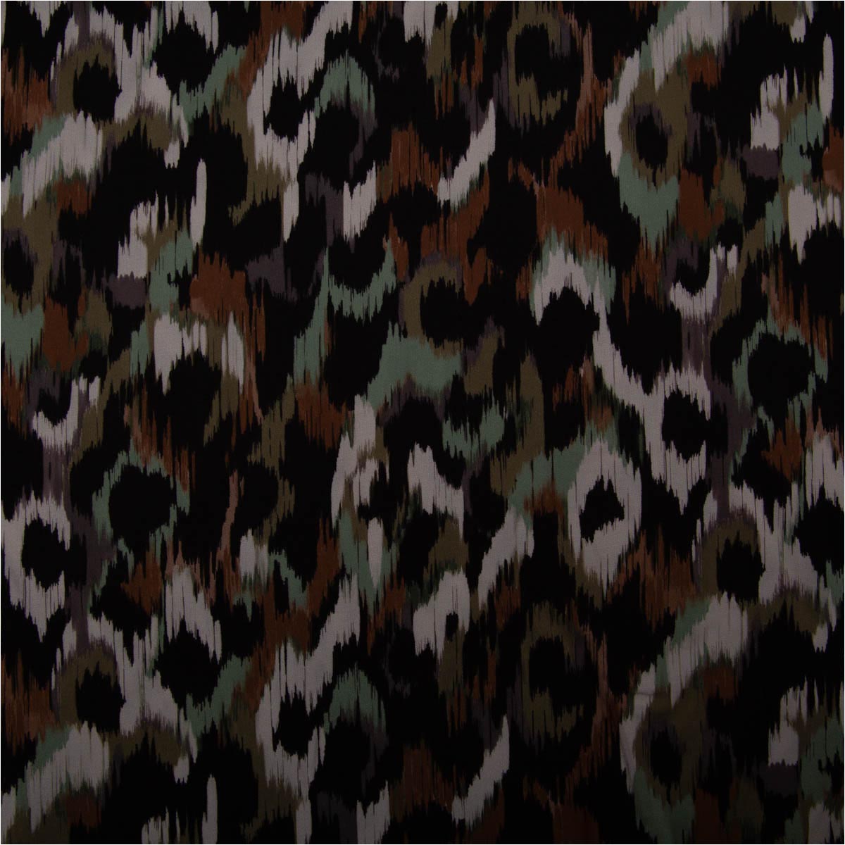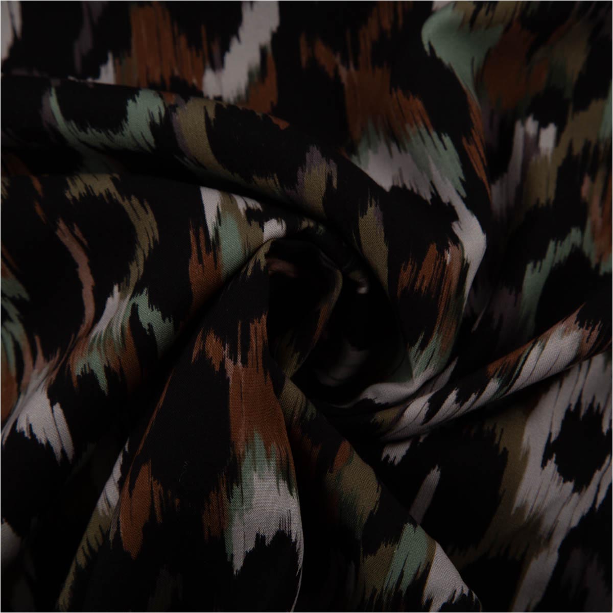 Viskose Popeline Stoff abstraktes Fleckendessin grün braun schwarz beige 1,38m Breite