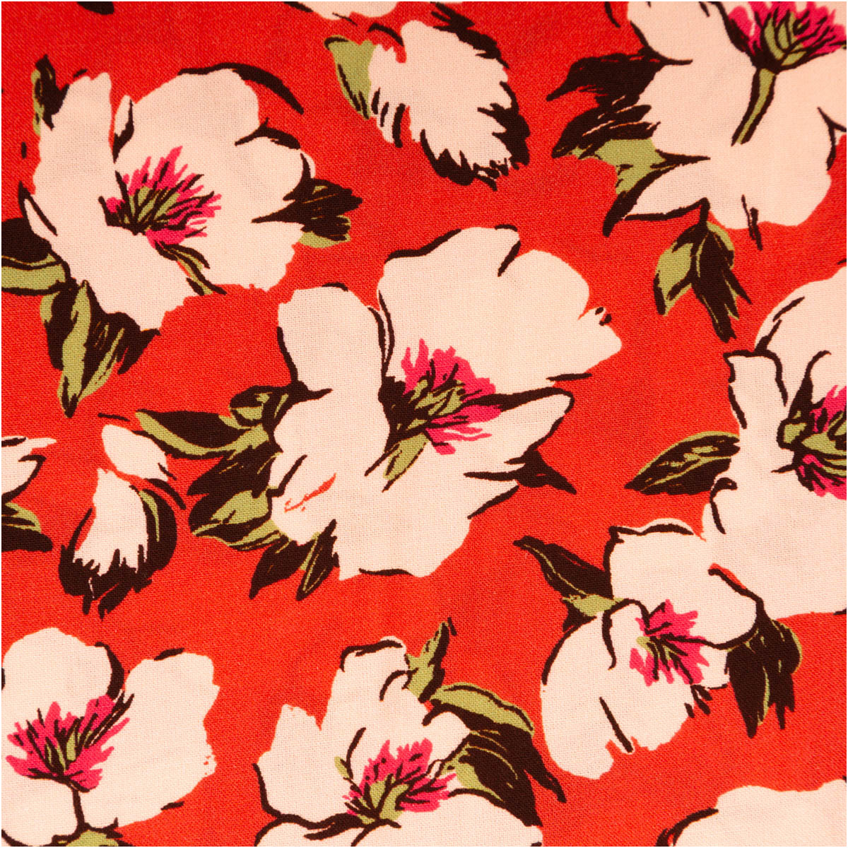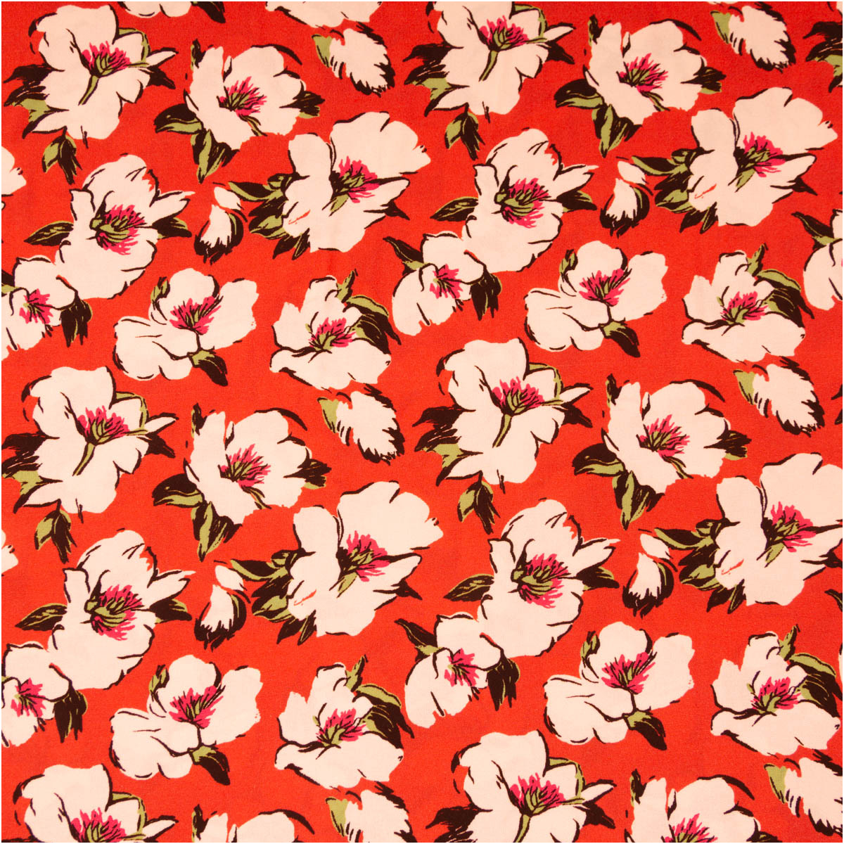 Viskose Stoff mit exklusivem französischem Blumendessin in Rot und Rosa