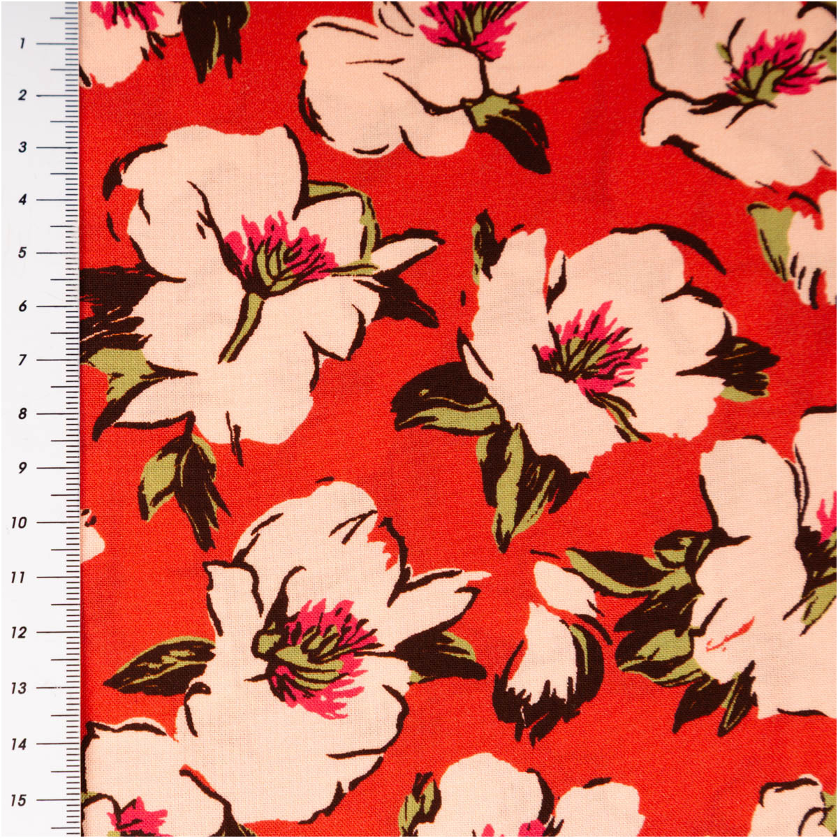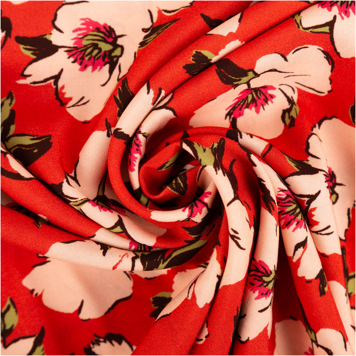 Viskose Stoff für Bekleidung Blumen rot rosa 140cm Stoffbreite