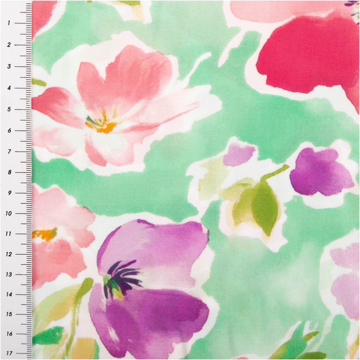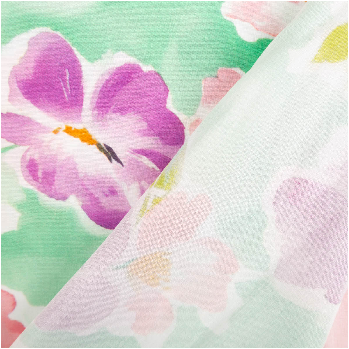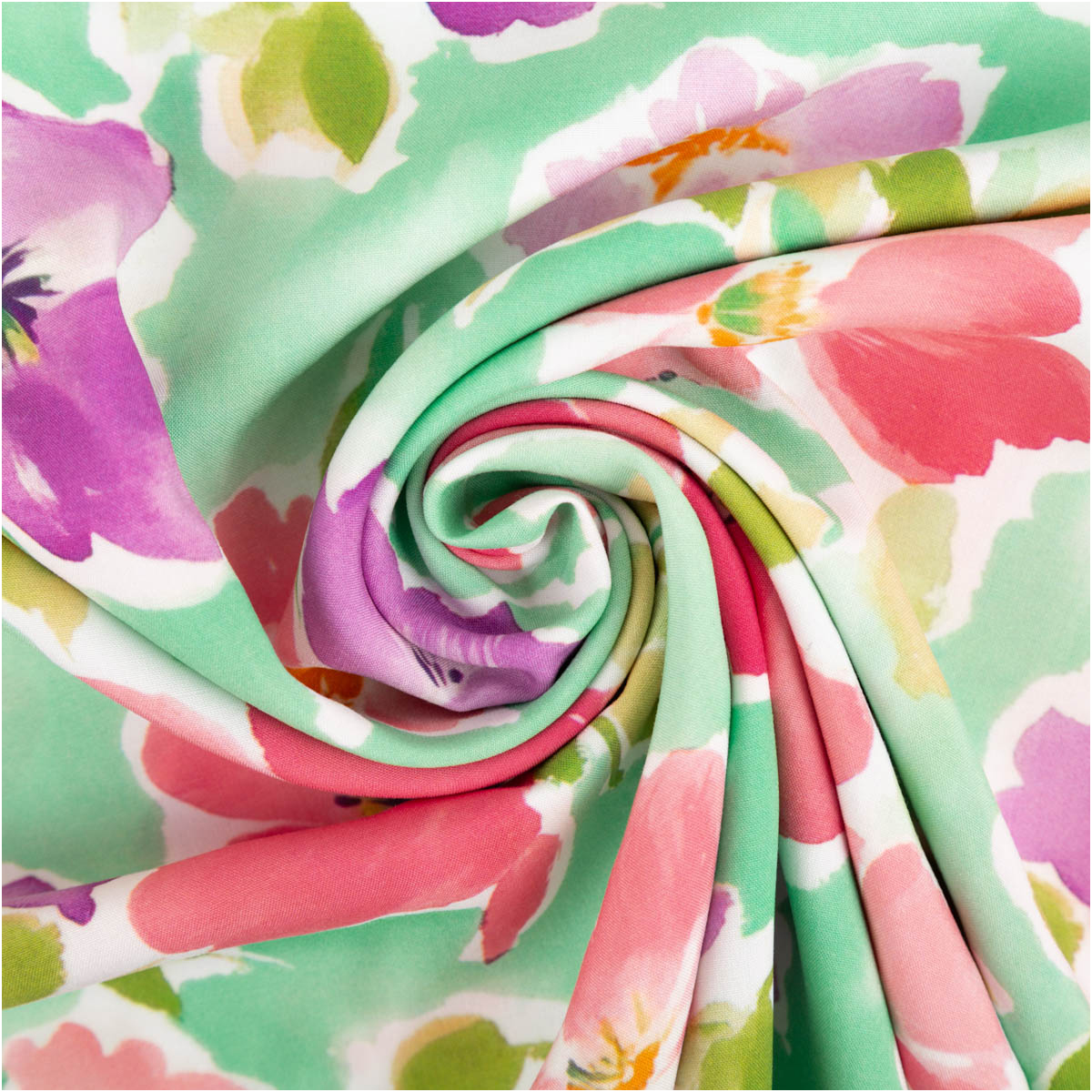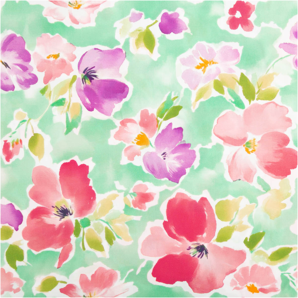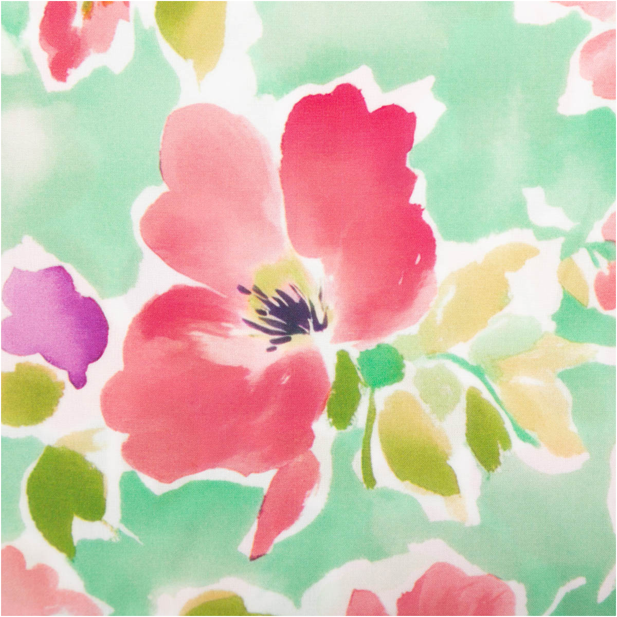 Die Blüten in Lila- und Rottönen wirken frisch und dynamisch. In Kombination mit dem hellgrünem Hintergrund entsteht ein ausgewogenes Gesamtbild, das sowohl auffällig als auch vielseitig kombinierbar ist. Damit passt der Stoff zu vielen Stilrichtungen – von romantisch bis modern.