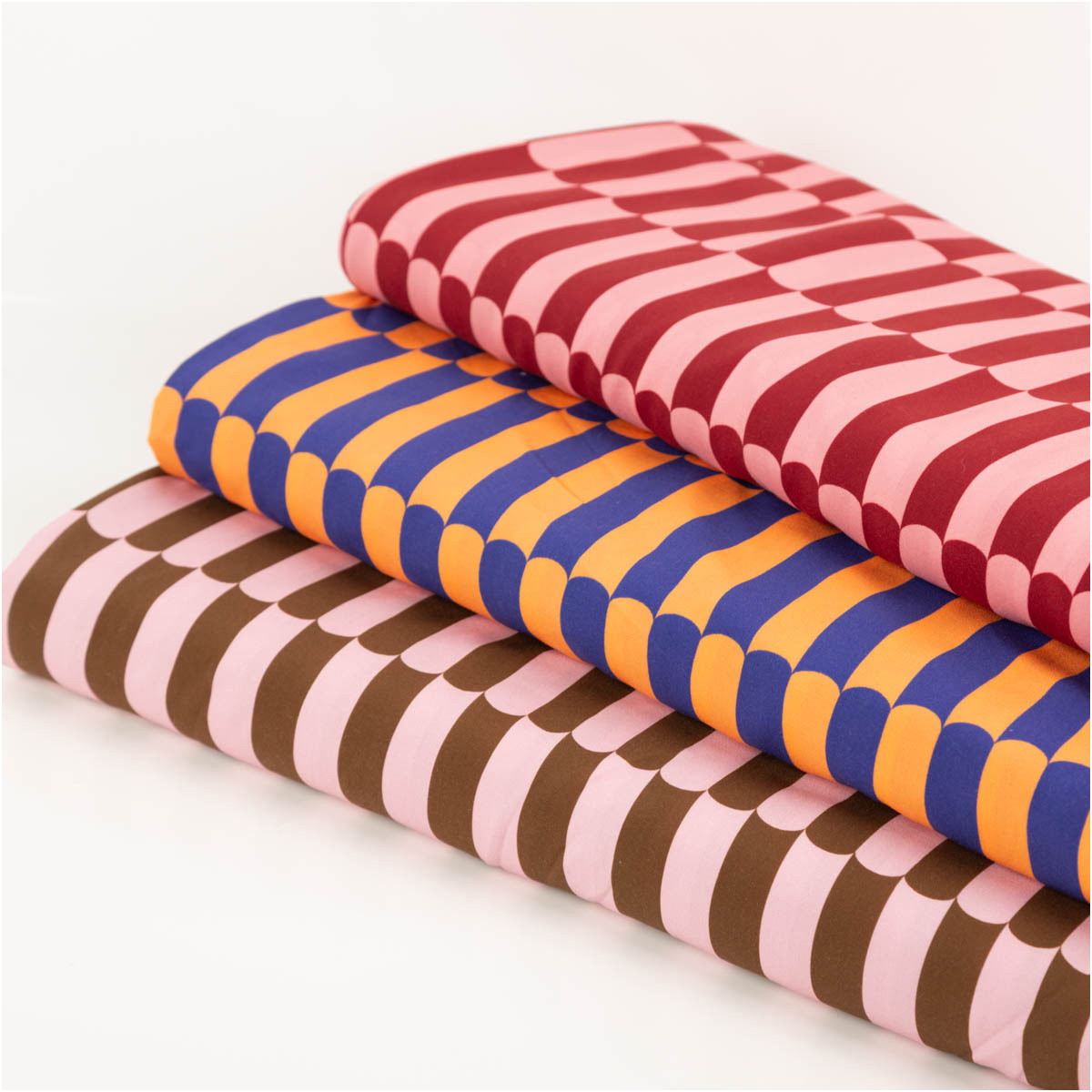 Dieser hochwertige Viskose Stoff aus Lenzing EcoVero™ Fasern verbindet modernes Retro-Design mit einem besonders umweltschonenden Herstellungsverfahren. Der fließende Fall, die seidig weiche Oberfläche und der ausdrucksstarke Print in Kobaltblau und Orange machen ihn zur perfekten Wahl für luftige Kleidung, stilvolle Accessoires und nachhaltige Nähprojekte.
