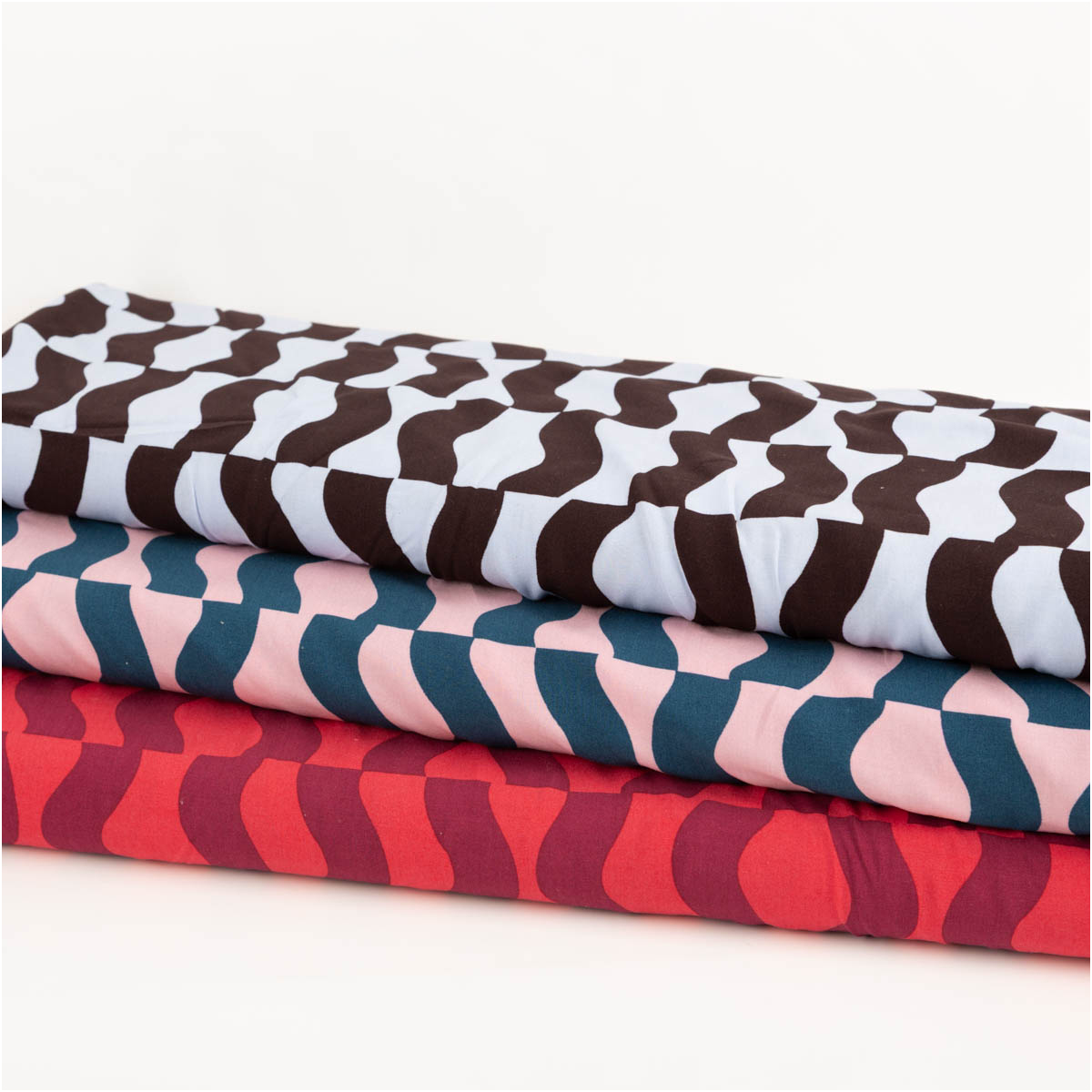Das Wellenmuster sorgt für Bewegung und Dynamik im Stoff. Die geschwungenen Formen wirken modern und lassen sich vielseitig kombinieren – von schlichten Schnitten bis hin zu auffälligen Fashion-Pieces. Dadurch entstehen individuelle Kleidungsstücke mit besonderem Charakter.