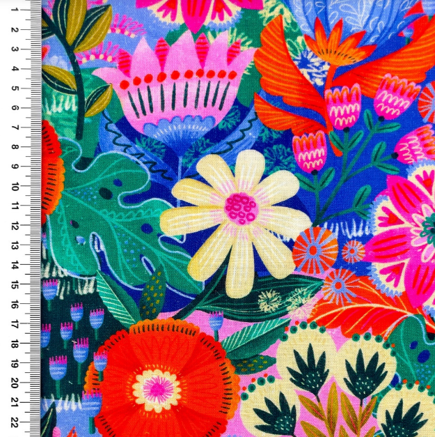 Dieser Viskose-Leinen Stoff mit buntem Blumenmuster ist ideal für alle, die leichte, fließende Stoffe mit natürlicher Optik und ausdrucksstarkem Design suchen. Perfekt für sommerliche Kleidung, kreative Accessoires und dekorative Wohnideen mit besonderem Flair.
