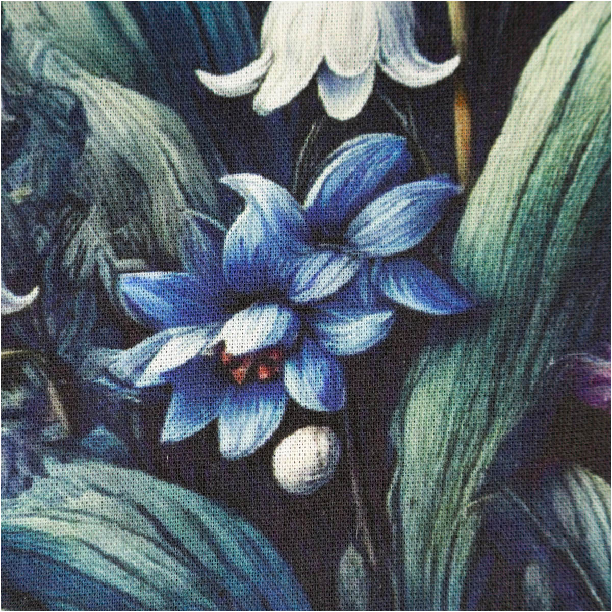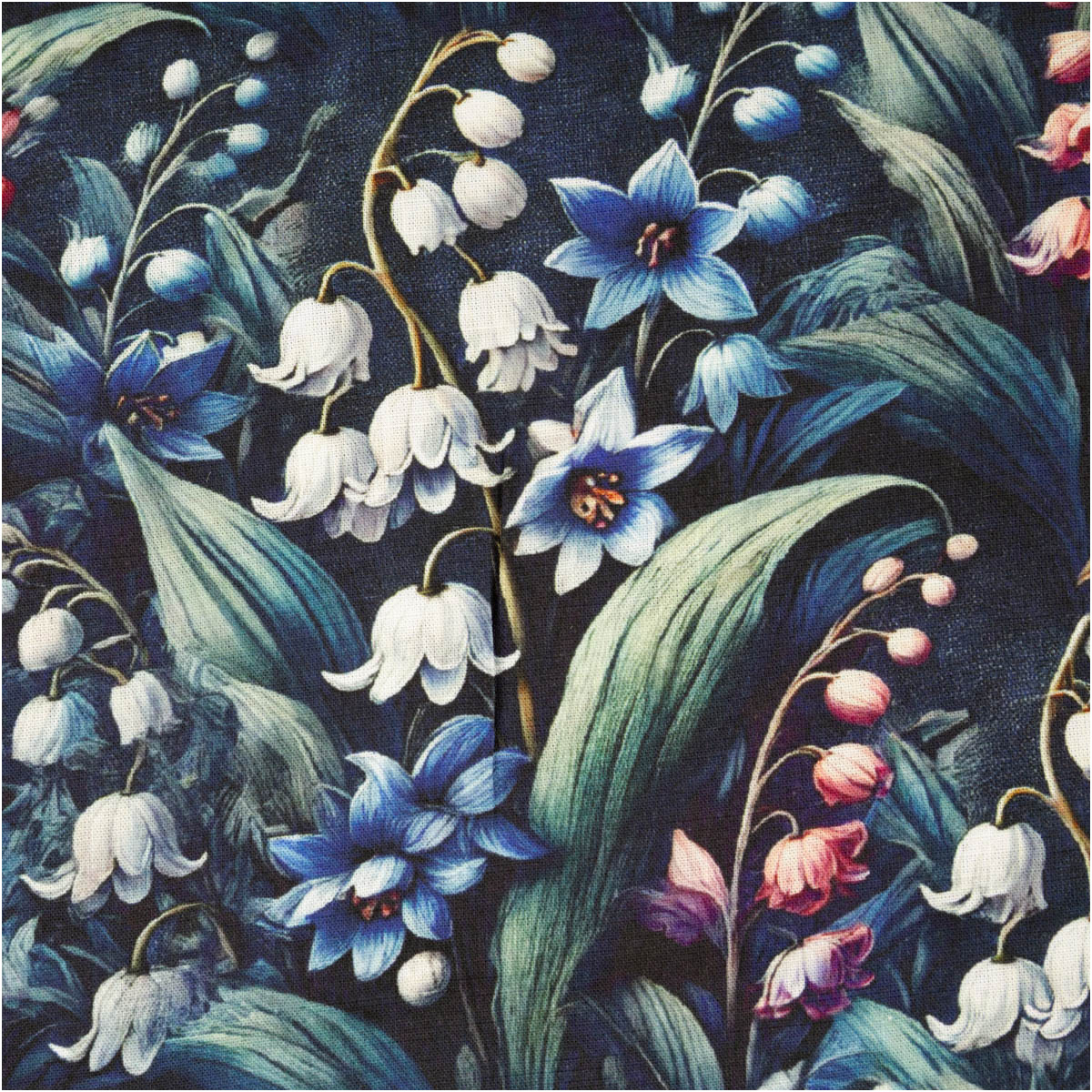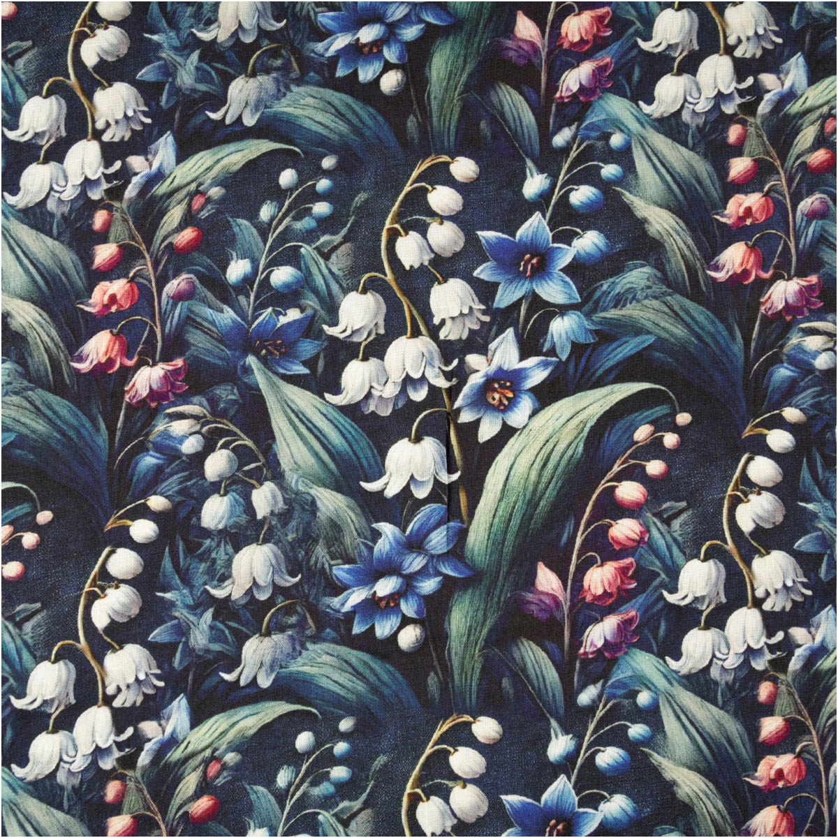 Maiglöckchen-Digitaldruck: elegantes Botanics-Motiv in blau, weiß und grün, detailreich und farbstark gedruckt