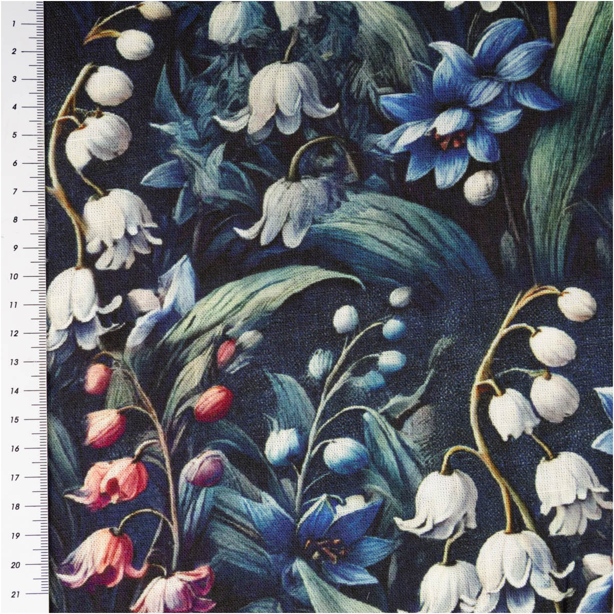 Viskose-Leinen Stoff „Maiglöckchen“ – blau/weiß/grün (Digitaldruck, 1,43 m breit)