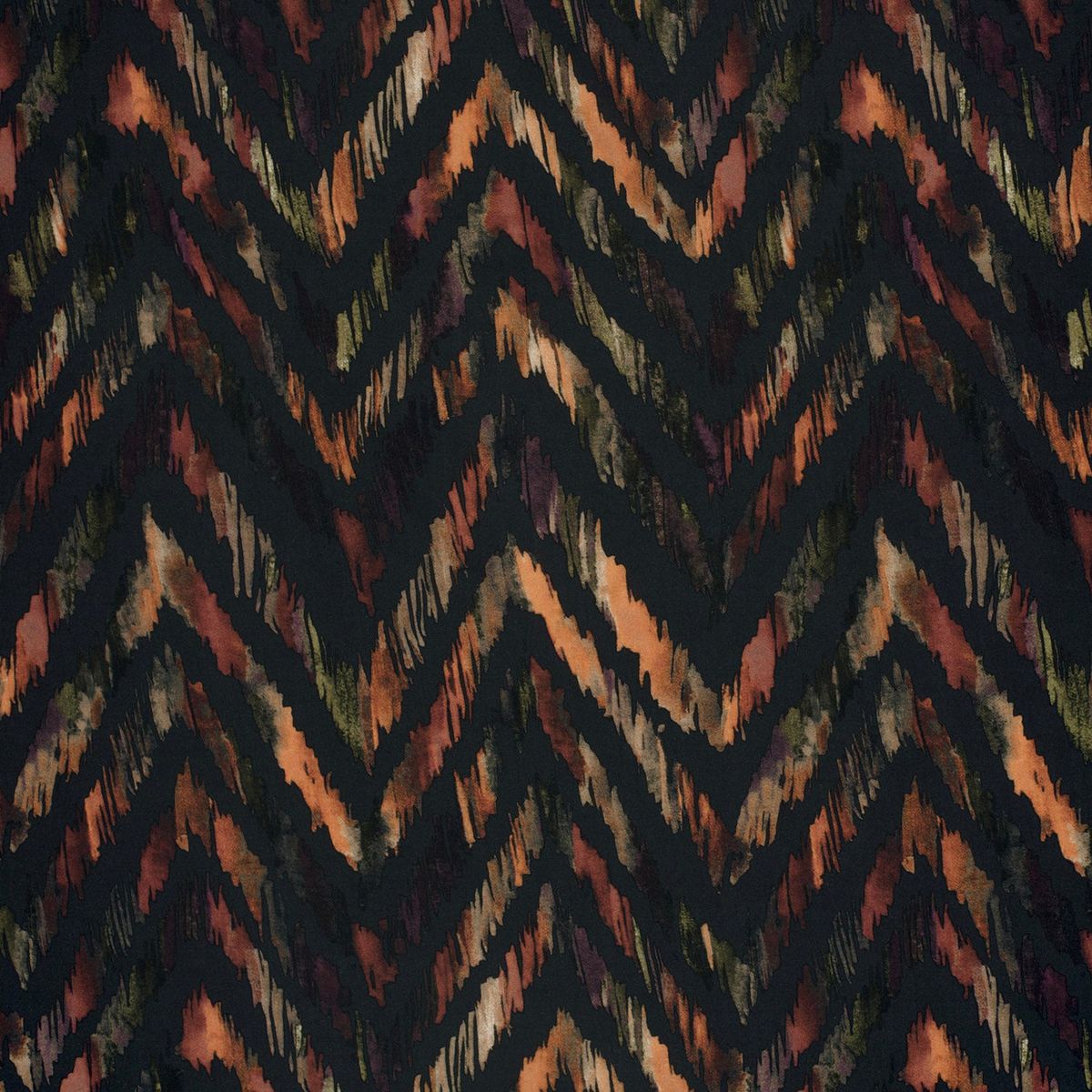 Optik: abstraktes Chevron/Zickzack-Dessin in Dunkelgrau mit erdigen Akzenten